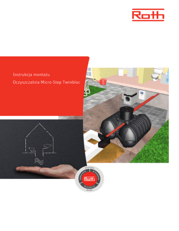 Instrukcja montażu Oczyszczalnia Micro-Step Twinbloc gro dy strybucja ad zenie wy twa a m rz energia e ni woda Instrukcja montażu Oczyszczalnia MicroMicro-Step Twinbloc Spis treś treści 1. Wiadomości ogólne 2. Zastosowanie i dane techniczne zbiornika 3. Zakres dostawy oczyszczalni Micro-Step Twinbloc 4. Montaż 4.1 Wiadomości ogólne 4.2 Wymagania gruntowe 4.3 Zabudowa w obszarze wód gruntowych 4.4 Nachylenie, skarpa, zabudowa w miejscach ruchliwych 4.5 Umieszczanie zbiornika w wykopie, orurowanie instalacji i wypełnienie wykopu 4.6 Dopasowanie wysokości włazu rewizyjnego w zależności od wielkości wykopu 4.6.1 Skracanie wysokości włazu rewizyjnego 4.6.2 Przedłużanie włazu rewizyjnego 4.7 Montaż włazu rewizyjnego z deklem o większej nośności do 600 kg 5. Montaż sterownika UNIT 5.1 Instrukcja montażu kompresora i sterownika UNIT 5.2 Charakterystyka sterownika UNIT 6. Kontrola i serwis oczyszczalni Roth Micro-Step Twinbloc 3 3 3 4 4 4 5 6 6 7 7 7 8 8 8 10 12 Instrukcja montażu Oczyszczalnia MicroMicro-Step Twinbloc 1. Wiadomoś Wiadomości ogólne Wykonawcę obowiązują warunki techniczne wykonania i odbioru robót budowlano montażowych, w szczególności zewnętrznych sieci wodociągowych i kanalizacyjnych oraz przepisy BHP. Zalecamy, aby instalację systemu i poszczególnych jego elementów powierzyć autoryzowanym firmom instalacyjnym. Należy zwrócić szczególną uwagę, aby właz rewizyjny oczyszczalni był zawsze przykryty deklem ze względów bezpieczeństwa. Należy wyłącznie stosować oryginalne elementy systemowe. 2. Zastosowanie i dane techniczne zbiornika Urządzenie jest przewidziane do zastosowania jako mała oczyszczalnia ścieków zgodnie z normą EN 12566-3. Posadowienie zbiornika w gruntach kategorii A i B (bardzo dobra i dobra przepuszczalność). Montaż z dala od szlaków komunikacyjnych, aby nie powodować nadmiernych obciążeń zbiorników. Obszar wykopu należy odpowiednio oznakować i zabezpieczyć przed najechaniem przez pojazdy. Wymiarowanie zbiornika: Zbiornik Długość mm Szerokość mm Wysokość mm Max wysokość ze studzienką Wysokość dopływu Ciężar ca. kg Twinbloc 5000 l 2440 2300 1350 2040 1277 300 3. Zakres dostawy oczyszczalni MicroMicro-Step Twinbloc Instalacja Micro-Step Twinbloc SBR-Hybryda od 4 do 6 mieszkańców składa się z 5000 litrowego płaskiego zbiornika Twinbloc, w którym ściany oddzielające separują strefę wstępnego oczyszczania, strefę biologiczną i strefę dodatkowego oczyszczania. Instalacja Micro-Step Twinbloc SBR-Hybryda od 8 do 12 mieszkańców składa się z dwóch 5000litrowych płaskich zbiorników Twinbloc. W jednym zbiorniku strefa biologiczna i strefa dodatkowego oczyszczania są odseparowane ścianą oddzielającą. Drugi zbiornik pozbawiony jest ściany oddzielającej i stanowi zbiornik wstępnego oczyszczania. Zbiorniki Twinbloc, ze względu na niedużą wysokość, umożliwiają minimalną głębokość montażu. Urządzenia są wstępnie fabrycznie przygotowane, odpowiednio do wielkości zestawów, w taki sposób, że po montażu zbiorników, muszą zostać zainstalowane tylko niezbędne przewody dopływowe i odpływowe – w instalacji 8 do 12 mieszkańców także przewody połączeniowe pomiędzy dwoma zbiornikami. Instrukcja montażu Oczyszczalnia MicroMicro-Step Twinbloc Po stronie sterowania szafka rozdzielcza musi zostać umieszczona w odpowiednim położeniu, a przewody powietrzne od szafki sterowniczej do instalacji muszą zostać odpowiednio ułożone. Na oprzyrządowanie dodatkowe instalacji składa się szafka sterownicza i węże powietrzne. W wysyłce są one zapakowane i umieszczone w studzience zbiornika oraz w samym zbiorniku. Informują o tym odpowiednie etykiety. Kolorowe oznaczenie punktowe ułatwia montaż węży powietrznych w odpowiednich przyłączach. Po podłączeniu przewodów powietrznych zapewniona jest już całkowita funkcjonalność elementów eksploatacyjnych urządzeń. Studzienki zbiornika DN 600 umożliwiają kontrolę optyczną elementów eksploatacyjnych, a w odniesieniu do robót konserwacyjnych wszystkie elementy eksploatacyjne są dostępne bez problemu i mogą bez większego trudu być demontowane z instalacji i ponownie w niej montowane. Próbki wody na odpływie mogą zostać pobrane z rury separacyjnej w strefie dodatkowego oczyszczania bezpośrednio ze studzienki. Wysokość studzienki może być dostosowywana do poziomu terenu. Przy głębszym montażu instalacji w ziemi studzienka może zostać maksymalnie przedłużona przy pomocy jednej przedłużki (przedłużka studzienki jest dostępna, jako opcja w asortymencie Roth). Szafka sterownicza jest również kompletnie wstępnie zainstalowana i może być ustawiana wewnętrznie w budynku i zewnętrznie (nie wolno montować szafki w zbiorniku), przy uwzględnieniu odpowiednich przepisów bezpieczeństwa. Sterowanie jest fabrycznie skonfigurowane i w każdej chwili może zostać zoptymalizowane przez autoryzowany serwis, odpowiednio do specyfiki instalacji. Do podłączenia elektrycznego potrzebne jest w miejscu montażu gniazdo wtykowe z zestykiem ochronnym 230 VAC, które powinno znajdować się w bezpośrednim pobliżu szafki sterowniczej. Dostarczone węże powietrzne wystarczają na montaż w odległości około 12 m od szafki sterowniczej do instalacji (dostarczane są kręgi węża 2 x 25 m, należy je zatem równo podzielić celem otrzymania 4 x 12,5 m). Własnoręczne modyfikacje techniczne oraz nieprzestrzeganie wymienionych przepisów negatywnie oddziałują na funkcjonowanie instalacji i pomniejszają świadczenia gwarancyjne producenta. 4. Montaż Monta ż 4.1 Wiadomości ogólne Instalacja musi być przeprowadzona przez instalatorów z odpowiednim doświadczeniem i którzy dysponują odpowiednim sprzętem. 4.2 Wymagania gruntowe - posadowienie w gruntach kategorii A i B (bardzo dobra i dobra przepuszczalność); - montaż z dala od szlaków komunikacyjnych, aby nie pow