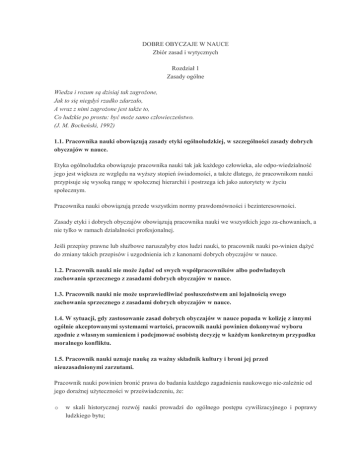 DOBRE OBYCZAJE W NAUCE Zbiór zasad i wytycznych Rozdział 1