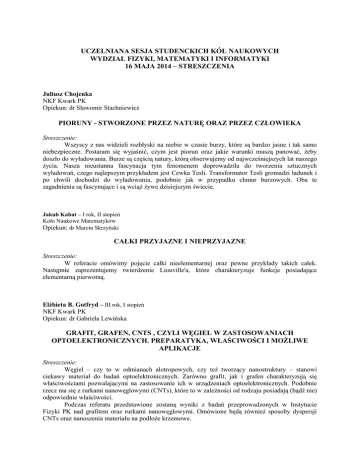 Fizyki PK nad grafitem oraz rurkami nanowęglowymi. Omówione będą również sposoby dyspersji