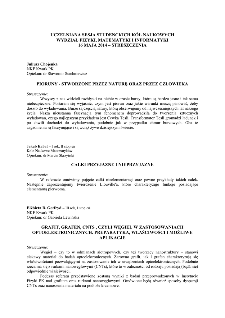 uczelniana sesja studenckich kół naukowych wydział fizyki