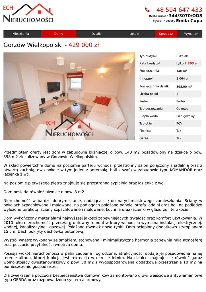 +48 504 647 433 Gorzów Wielkopolski - 429 000 zł