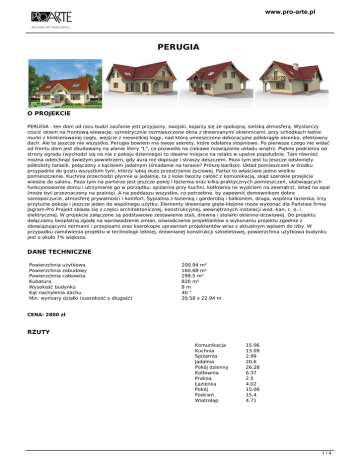 www.pro-arte.pl PERUGIA O PROJEKCIE PERUGIA - ten dom od razu budzi zaufanie jest przyjazny, swojski, kojarzy się ze spokojną, sielską atmosferą. Wystarczy rzucić okiem na frontową elewację: symetrycznie rozmieszczone okna z drewnianymi okiennicami, przy schodkach ładne murki z klinkierowanej cegły, wejście z niewielkiej loggi, nad którą umieszczono dekoracyjne półokrągłe okienko, efektowny dach. Ale to jeszcze nie wszystko, Perugia bowiem ma swoje sekrety, które odsłania stopniowo. Po pierwsze czego nie widać od frontu dom jest zbudowany na planie litery "L", co pozwoliło na ciekawe rozwiązanie układu wnętrz. Piękne podcienia od strony ogrodu (wychodzi się na nie z pokoju dziennego) to idealne miejsce na relaks w upalne popołudnie. Tam również można odetchnąć świeżym powietrzem, gdy aura nie dopisuje i straszy deszczem. Poza tym jest tu jeszcze odsłonięty półkolisty tarasik, połączony z kącikiem jadalnym (śniadanie na tarasie? Proszę bardzo). Układ pomieszczeń w środku przypadnie do gustu wszystkim tym, którzy lubią dużo przestrzenie życiowej. Parter to właściwie jedno wielkie pomieszczenie. Kuchnia przechodzi płynnie w jadalnię, ta z kolei tworzy całość z komunikacją, skąd szerokie przejście wiedzie do salonu. Poza tym na parterze jest jeszcze pokój i łazienka oraz kilka praktycznych pomieszczeń, ułatwiających funkcjonowanie domu i utrzymanie go w porządku: spiżarnia przy kuchni, kotłownia (w wyjściem na zewnątrz), skład na opał (może być przeznaczony na pralnię). A na poddaszu wszystko, co potrzebne, by zapewnić domownikom dobre samopoczucie, atmosferę prywatności i komfort. Sypialnia z łazienką i garderobą i balkonem, druga, wspólna łazienka, trzy przytulne pokoje i jeszcze jeden do wspólnego użytku. Elementy drewniane gięte-klejone może wykonać dla Państwa firma Jagram-Pro Projekt składa się z części architektonicznej, konstrukcyjnej, wewnętrznych instalacji wod.-kan, c. o. i elektrycznej. W projekcie załączone są podstawowe zestawienie stali, drewna i stolarki okienno-drzwiowej. Do projektu dołączamy bezpłatną zgodę na wprowadzenie zmian, oświadczenie projektantów o wykonaniu projektu zgodnie z obowiązującymi normami i przepisami oraz kserokopie uprawnień projektantów wraz z aktualnym wpisem do izby. W przypadku zamówienia projektu w technologii lekkiej, drewnianej konstrukcji szkieletowej, powierzchnia użytkowa budynku jest o około 7% większa. DANE TECHNICZNE Powierzchnia użytkowa Powierzchnia zabudowy Powierzchnia całkowita Kubatura Wysokość budynku Kąt nachylenia dachu Min. wymiary działki (szerokość x długość) 200.94 m² 160.68 m² 299.5 m² 820 m³ 8m 40 ° 20.58 x 22.94 m CENA: 2800 zł RZUTY Komunikacja Kuchnia Spiżarnia Jadalnia Pokój dzienny Kotłownia Pralnia Łazienka Pokój Podcień Wiatrołap 15.06 13.09 2.99 20.6 26.28 6.37 2.5 4.02 15.06 15.4 4.71 1/4 www.pro-arte.pl Komunikacja Pokój Pokój Pom. rekreacyjne Pokój Łazienka Łazienka Sypialnia Garderoba Garderoba 13.64 12.14 10.14 4.36 11.52 9.88 1.67 21.13 2.89 2.89 2/4 www.pro-arte.pl 3/4 www.pro-arte.pl tel. (32) 43-50-829, 502 575 920, [email protected], www.pro-arte.pl 4/4 Powered by TCPDF (www.tcpdf.org)