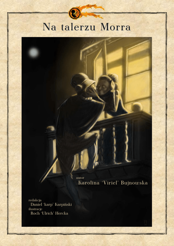 Na talerzu Morra autor Karolina ‘Viriel’ Bujnowska redakcja Daniel ‘karp’ Karpiński ilustracje Roch ‘Ulrich’ Hercka Spijał słodycz z karminowych, lśniących warg rozchylonych lekko, niczym płatki najpiękniejszego kwiatu, wilgotnych jakby za sprawą cudownej rosy. Gdy zatapiał dłoń w miękkim jedwabiu hebanowych włosów, druga zachłannie i pożądliwie wędrowała po smukłej tali. Czuł jak wdzięcznie drży w jego ramionach, jak z pasją oddaje każdy pocałunek, każdą pieszczotę. Połączenie uroku i temperamentu, zaklęte w przecudnej urody ciele, to wszystko o czym mógł marzyć tej nocy. - Jesteś boginią, o pani – nagradzał cichym szeptem każdy jej ruch, przynoszący mu tyle radości. Podziwiał delikatny rumieniec, który zdobił jej lico, gdy lekko przygryzała czerwień warg i prężyła ciało w rozkoszy jego pieszczot. Znosił z radością każdy mocniejszy dotyk jej dłoni na swoich plecach, uśmiechał się lekko, gdy paznokcie znaczyły kolejne szlaki upojnej wędrówki. - Pani, jaśnie pani – cichutkie pukanie do drzwi i wystraszony głos Julietty, młodej i roztrzepanej, ale za to wiernej swojej pani pokojowej, wyrwały ich z miłosnych uniesień. – Pani, mąż powrócił do domu! - Na Sigmara – westchnął szybko, acz niechętnie, zrywając się z pościeli. - Jego w to nie mieszaj, miły – położyła mu palec na ustach, uciszając narzekania. – Kiedy się znów ujrzymy? – spytała, okrywając w pośpiechu swoje wdzięki nocnym strojem. - Najdalej za dzień lub dwa, rozkoszy ty moja – skradł jeszcze drobny pocałunek, nim praktycznie siłą skierowała go w stronę balkonu. Nigdy nie lubił salwować się ucieczką na żadnym polu walki, na jakim przyszło mu stawać. Przeciwnikowi zawsze spoglądał śmiało w oczy, gotów mierzyć się ze swoim wyzwaniem choćby i do samych bram Morra. Podobnież bywało z długimi dysputami w arcynudnym, nadętym, szlacheckim towarzystwie czy nawet z najzuchwalszymi zakładami w pijackim gronie najwierniejszych kompanów. Jochanes był już po prostu taki, że nigdy nie oddawał pola. No poza tym jedynym wyjątkiem, gdy pole owo było małżeńską alkową, a pan domu akurat wcześniej postanowił wrócić z proszonego wieczoru. Cóż, i takie niewygody był w stanie znosić dla wdzięku i urody kobiecej. Jeśli dodać do tego, że Izabell była kobietą wartą wszystkich jego usilnych starań i zabiegów, nie dziwi, że nawet mało bohaterski rajd przez ogrody połączony z wdziewaniem i dopinaniem garderoby nie umniejszył jego radości. *** - Jeszcze wina, kwiatuszku! – Jochanes rzucił karczemnej dziewce napiwek na stół. Obdarzyła go najwspanialszym uśmiechem, jaki jest w stanie przywołać na swoim licu przeciętnej urody podlotek i szybko zgarnęła monety. Jochanes jeszcze przez chwilę odprowadzał ją wzrokiem, kontemplując kształt bioder i kuszące wcięcie talii. Uznał, że to jedyne warte oglądania fragmenty jej ciała, choć pewnie całość cieszy nocami niejednego prostaka. - Słuchasz ty mnie w ogóle? – zachrypnięty głos kompana wyrwał go z zadumy. – Pytałem, czy wybierasz się może na ten proszony wieczór do von Ubertermaurów? - Sam nie wiem… – Z widocznym rozleniwieniem delektował się resztką wina w kielichu. – Jakoś mi nie spieszno. - Znowu straciłeś głowę dla jakiejś kobitki? – zarechotał towarzysz. - Kobiety, Kastorze, kobiety. Może ty gustujesz w kobitkach, twoje szczęście, więcej ich na świecie. Ja zaś wolę takie, dla chwili z którymi warto Bogów wyzywać na pojedynki. - Zgłupiałeś i na dodatek bluźnisz. – Kastor wychylił swój kielich do dna. – Bogów? Ja bym się na twoim miejscu mężów i ojców obawiał. 2 - Cóż począć Kastorze, znasz moją słabość do kruchych istot, skrzywdzonych przez los paskudnym zaniedbaniem… – zawiesił na moment głos, by dokończyć już ciszej – ja je z nudy okowów ratuję, od najgorszego losu, jakim jest dla kobiety chłód, wybawiam. - Jak ty to wszystko umiesz ładnie nazwać. Łajdactwo miłością, pijaństwo degustacją, a nasze niechlubne zakłady próbami. - A ty wszystko umiesz, za wybaczeniem jaśnie panie kompanie, spierdolić! – Jochanes wyszczerzył równe zęby w pijackim uśmiechu. – Nadobną Luizę osobiście pchnąłem w twoje ręce, toś jedynie kwiaty jej znosił i u stóp kładł. A ona nie kwiatków chciała, ogierze. - Pomiarkuj, co pleciesz, żałosny opoju – żachnął się lekko obruszony Kastor. – Nie wszystkie one tylko jednego spragnione. - Czy ja im kwiatów żałuję, druhu? Czekoladek skąpię, komplementów nie składam? Widzę, że masz o mnie złe zdanie. – W zapomnieniu mocno klepnął w pośladek dziewkę, która przyniosła im nowy antałek.– Dziękuję, moja ptaszynko! - O widzisz! – Kastor teatralnym wręcz gestem dłoni wskazał zaczerwienionego podlotka. – Zdanie takie mam, jakie sobie przez te wszystkie lata naszej znajomości raczyłem wyrobić. - To co ty jeszcze robisz przy tej ławie, poza piciem na mój koszt? - To co zawsze, spędzam czas z najlepszym druhem, nie mówiłem przecież ani razu, że to złe zdanie było. Obaj zaśmiali się w głos. Takie właśnie wieczory lubili, suto zakrapiane alkoholem, spędzane na pogawędkach poprzetykanych drobnymi uszczypliwościami. Rekompensowali sobie nimi nudy służby za dnia i trudy ewentualnych podróży. Często biesiadowali z innymi oficerami, czasem ze zwykłymi żołdakami. Szlachectwo Jochanesa nigdy im w tym nie przeszkadzało, bo albo wszystkich traktował jak szlachtę, albo siebie jak żołdaka. Zależało od dnia i ilości wypitego wina. Jakiego Kastor nie miałby zdania o miłosnych podbojach swego przyjaciela i woli zbyt mało odpornej na kobiece wdzięki, to jednak darzył szlachcica szczerym i wypróbowanym uczuciem wręcz braterskiej miłości. Znali się odkąd obaj zaczęli służyć w armii. Kastor był od początku przypisany jako pomo