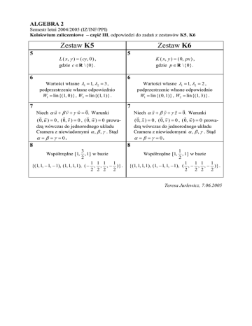 Kolokwium zaliczeniowe – część III, odpowiedzi do zadań z zestawów K5, K6