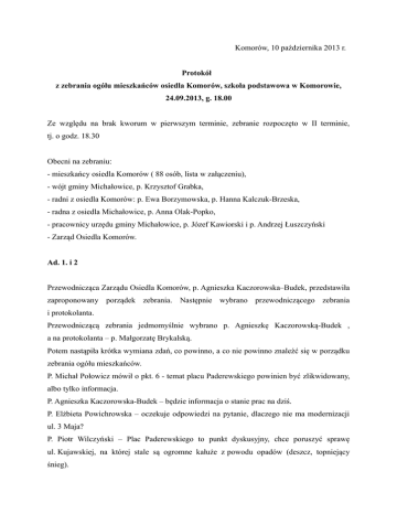 Protokół z Ogólnego Zebrania Mieszkańców Osiedla Komorów z