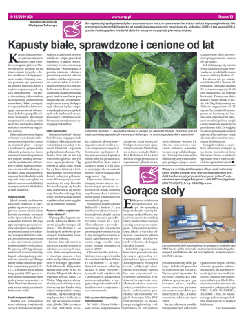 Nr 10/2009 (62) www.wrp.pl Wiesław Jakubowski Władysław Tokarczyk Strona 13 Do najważniejszych pod względem gospodarczym warzyw uprawianych w Polsce należy kapusta głowiasta. Na przestrzeni ostatnich kilkunastu lat areał jej uprawy znacznie zmniejszył się, jednak w 2008 r. i tak wynosił 29,6 tys. ha. Pod względem wielkości zbiorów warzywo to zajmuje pierwsze miejsce. Kapusty białe, sprawdzone i cenione od lat K apusta biała, a zwłaszcza jej najwcześniejsze odmiany mają wysokie wymagania glebowe. Najwyższe plony uzyskuje się na stanowiskach żyznych, o dobrej strukturze i dużej pojemności wodnej. Odmiany wczesne powinny być uprawiane na glebach lżejszych, łatwo i szybko nagrzewających się, a co najważniejsze – na których możemy odpowiednio wcześnie wejść z wiosennymi uprawkami. Należy pamiętać, że kapusty bardzo dobrze reagują na nawożenie obornikiem. Jednak w przypadku odmian wczesnych, aby nawóz ten przyniósł pożądany efekt musi być szczególnie dobrze rozłożony i stosowany najpóźniej jesienią. Racjonalne nawożenie kapust zwłaszcza w produkcji wielkotowarowej powinno być oparte na analizach gleby – odczyn i zasobność w przyswajalne składniki pokarmowe. Samo nawożenie mineralne powinno być jedynie korektą ewentualnych niedoborów składników w glebie. Kapusty, zwłaszcza wczesne ich odmiany, w krótkim czasie muszą pobrać znacznej ilości składników, tak więc nie warto oszczędzać na jakości nawozów, a dokładniej na przyswajalności składników w nich zawartych. Produkcja rozsady Jakość rozsady ma kluczowe znaczenie zwłaszcza w przypadku kapust wczesnych i w głównej mierze od niej zależy łatwość sterowania wzrostem roślin i prowadzenie zbiorów w żądanym terminie. Dla tego typu kapust przy produkcji rozsady wymagane są odpowiednie pomieszczenia typu szklarnie, inspekty lub tunele najlepiej z możliwością ogrzewania w celu zapewnienia optymalnych warunków termicznych. Począwszy od 5 tygodnia po wschodach wczesne odmiany kapust wykazują dużą podatność na jarowizację i dlatego należy unikać dłuższych spadków temperatury poniżej 10– 12°C. Okresowe nocne spadki temp. poniżej 10°C są w pewnym stopniu niwelowane przez podwyższone temperatury w dzień. Przed wysadzaniem rozsady kapust należy pamiętać o hartowaniu roślin. Szeroki asortyment odmian Trudno jest wyhodować nową odmianę o wybitnych cechach użytkowych, aby speł- niała ona oczekiwania zarówno rolnika na etapie produkcji, handlowca w trakcie obrotu i sprzedaży towaru oraz samego kupującego – konsumenta. Z punktu widzenia rolnika o prawdziwej wartości odmian świadczy stabilność plonowania odmian, także w latach o mniej sprzyjających warunkach wzrostu. Firma nasienna Nickerson-Zwaan prowadząc prace hodowlane bierze pod uwagę cały cykl „życia rośliny” dzięki czemu mamy do dyspozycji odmiany będące niepowtarzalną kompozycją idealnych cech użytkowych oraz jakościowych i spełniające oczekiwania nawet najbardziej wymagających klientów. Obfity i wczesny plon Odmiana Borodin F1 dojrzałość zbiorczą osiąga po około 65 dniach. Polecana jest do najwcześniejszej produkcji w tunelach foliowych i w gruncie pod płaskimi osłonami. Wytwarza duże jak na ten typ wczesności główki, których masa często przekracza 2 kg. Główki są kuliste, duże, zwarte barwy biało-żółtawej, z krótkim głąbem wewnętrznym. Pokrój roślin jest półwzniesiony, liść okrywający ciemnozielony i trwały. Borodin F1 charakteryzuje się bardzo dużą odpornością na jarowizację. Ponadto cechuje go duży wigor i możliwy dzięki bardzo wysokiej odporności na pękanie przedłużony zbiorów. Postaw na stabilne i wypróbowane – Balbro i Burbon F1 W przypadku kapust wczesnych, odmiana Balbro F1, czy też jej godny następca odmiana CMS Burbon F1 od lat należą do czołówki sprawdzonych i najbardziej niezawodnych odmian. Bardzo duża odporność na jarowizacje predysponuje te odmiany do wczesnych nasadzeń. Polecane są do uprawy w otwartym gruncie, w tym także pod płaskimi osłonami oraz w różnego typu tunelach foliowych. Optymalne zagęszczenie to 40-50 tys. roślin/ha. Długość ich okresu wegetacji wynosi około 7075 dni. Mają wiele cech wyróżniających z których najistotniejszy jest bardzo duży wigor i niespotykane tempo wzrostu, szybko zakrywają międzyrzędzia i ściśle jak na ten typ wczesności wypełniają główki. Taki typ wzrostu oraz relatywnie wyso- Odmiana Borodin F1 dojrzałość zbiorczą osiąga po około 65 dniach. Polecana jest do najwcześniejszej produkcji w tunelach foliowych i w gruncie pod płaskimi osłonami. kie osadzenie główek sprzyjają zdrowotność roślin podczas całego okresu wegetacji. Ostatecznie uzyskujemy obfity plon wczesnej kapusty o bardzo dobrych parametrach: główki kuliste, duże, zbite i ciężkie o masie 2-3 kg choć w sprzyjających warunkach uprawy nawet osiągającymi wagę nawet 4 kg. Opisywane odmiany cechują się bardzo silnym i rozbudowanym systemem korzeniowym dzięki któremu uzyskujemy duże i stabilne plony nawet w trudniejszych warunkach uprawy. Następnym atutem odmian Balbro F1 i Burbon F1 jest zwiększona odporność na pękanie główek, dzięki czemu można znacznie przedłużyć zbiór (nawet do 4 tyg.). Obie odmiany z powodzeniem mogą być używane do pierwszego kwaszenia. Cecha ta jest szczególnie ceniona w latach , gdy kapusta do kwaszenia osiąga wysokie ceny, a taką sytuację notujemy tej jesieni (2009) Obecnie trudno jest znaleźć na rynku odpowiednika dla odmian takich jak Balbro F1 czy Burbon F1. Są to jedyne tak wczesne odmiany łączące w sobie tyle pozytywnych cech użytkowych i spełniających oczekiwania zarówno najbardziej wymagających producentów jak i handlowców i co najważniejsze konsumentów. Jakie są zatem różnice pomiędzy tymi odmianami? W 2009 r. Firma Nickerson-Zwaan zorganizowała na teren