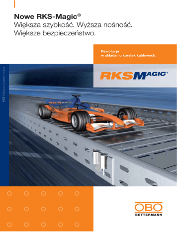 Nowe RKS-Magic® Większa szybkość. Wyższa nośność. Większe bezpieczeństwo. KTS Kablowe systemy nośne Rewolucja w układaniu korytek kablowych. W SZYB IE˛KSZA 2 RKS-Magic® BKOŚĆ Nowe korytko kablowe RKS-Magic® dzięki innowacyjnemu zatrzaskowi łączy prędkość, wysoką nośność i bezpieczeństwo. Elementy należy po prostu zestawić ze sobą, wsunąć – i gotowe. Pozwala to na oszczędność czasu – bez śrub, łączników i innych elementów wyposażenia można zwiększyć tempo montażu o 100%. RKS-Magic® 3 W IE˛KSZA SZYBKOŚĆ Zwiększenie szybkości montażu dzięki RKS-Magic® Montaż trasy z użyciem zwykłego korytka kablowego Montaż trasy z użyciem RKS-Magic® Dzięki innowacyjnemu złączu zatrzaskowemu mogą Państwo zwiększyć możliwości montażowe nawet o 100%. Wyraźne kliknięcie gwarantuje prawidłowy montaż korytka kablowego RKS-Magic ®. 4 RKS-Magic® Click + 100% Po prostu łatwiejsza praca . Element sprężynowy jest na stałe połączony z korytkiem i nie może się zgubić. Dla ponownego rozłączenia . Wystarczy śrubokręt – wsunąć pod uchwyty i gotowe. RKS-Magic® 5 W YŻSZA NOŚNOŚĆ 200% międzynarodowe zgłoszenie patentowe Gwarantowane 200%-owe połączenie, większa nośność i większa stabilność. 100% 100% 6 RKS-Magic® . Korytka kablowe nie są ze sobą łączone stykowo, lecz zachodzą na siebie w miejscu połączenia i są łączone zatrzaskowo. . Atest VDE dotyczący nośności-wg DIN EN IEC 61537:2007 . Opatentowane złącze zatrzaskowe gwarancją wyższej nośności . Stabilność kształtu dzięki innowacyjnej technice połączeniowej – również przy maksymalnych obciążeniach W IE˛KSZE BEZPIECZEŃSTWO Optymalna ochrona kabli Nie jest potrzebny pręt gwintowany Większe bezpieczeństwo mechaniczne. Większe bezpieczeństwo elektryczne. Większe bezpieczeństwo w razie pożaru. TESTOWANE | DIN 4102-12 E 30 Bezpieczeństwo mechaniczne. . Również przy maksymalnym obciążeniu zapewniona jest ochrona kabla w miejscach połączeń . Certyfikat VDE- zgodność z DIN EN IEC 61537:2007 . Bezpieczne złącze zatrzaskowe nawet przy wstrząsach i wibracjach Bezpieczeństwo elektryczne. . Wyrównanie potencjałów bez dodatkowych elementów konstrukcyjnych - trwałe i pewne . Testowane pod względem tolerancji elektromagnetycznej i prądu udarowego E 60 E 90 Bezpieczeństwo w razie pożaru. . Atest MPA dla podtrzymania funkcji instalacji elektrycznej podczas pożaru wg DIN 4102-12, obciążalne do 20 kg/m szerokość 100 do 300 mm, 30 kg/m dla szerokości 400 mm . Nie jest konieczne zabezpieczenie pretęm gwintowanym wysięgników RKS-Magic® 7 Wykaz produktów Typ Szerokość Grubość blachy Wysokość Dostarczaboku na długość mm mm mm mm Nr kat. St / FS RKSM 310 100 0,75 35 3 050 6047 41 7 RKSM 320 200 0,75 35 3 050 6047 43 3 RKSM 330 300 0,75 35 3 050 6047 46 0 RKSM 610 100 0,75 60 3 050 6047 61 1 RKSM 615 150 0,75 60 3 050 6047 63 0 RKSM 620 200 0,75 60 3 050 6047 63 8 RKSM 630 300 0,75 60 3 050 6047 65 4 RKSM 640 400 0,9 60 3 050 6047 68 9 RKSM 650 500 0,9 60 3 050 6047 71 9 RKSM 660 600 0,9 60 3 050 6047 73 5 FS Ocynk Sendzimira zgodnie z DIN EN 10327 E E EILåUNDå å-ONTAG å0LANERT CHTEN EITERTEM PRAXISGERE -ITåERW NåZURå AHLHILFE !USW BSS Brandschu Brandschutz-Systeme G3YST EME + 43 YSTEM RAG3 +ABELT ABELTRA Das komplette Brandschutzprogramm mit umfangreichen Planungs- und Montageinformationen zur sicheren Installation. BSS Brandschutz-Systeme +43å+ Pełna kompatybilność Zagwarantowana jest kompatybilność ze wszystkimi łącznikami i kształtkami systemu RKS oraz z korytkiem kablowym RKS. Wyłącznie w przypadku połączenia z kształtkami o szerokości większej, niż 400 mm należy zamówić dodatkowe zestawy łączników. Dostarczana długość Długość handlowa RKS-Magic® - wynosi 3.050 mm. Przez nakładanie się elementów w miejscu łączenia długość użytkowa to 3.000 mm. Kompletny program sprzedaży ze wszystkimi łącznikami i kształtkami znajdą Państwo w naszym katalogu KTS i BSS OBO BETTERMANN Polska Sp. z o.o. ul. Gierdziejewskiego 7 02-495 Warszawa Tel. 0 22 397 49 10 · Fax 0 22 398 07 44 Tel. kom. 0600 082 403 Tel. kom. 0600 082 407 E-mail: [email protected] www.obo.pl Biura Regionalne: Gdańsk: Fax (058) 347 51 16 Tel. kom. 0600 082 406 Katowice: Fax (032) 204 91 34 Tel. kom. 0600 082 405 Tel. kom. 0602 716 944 Poznań: Fax (061) 662 28 21 Tel. kom. 0600 082 409 Wrocław: Fax (71) 340 03 97 Tel. kom. 0600 082 408