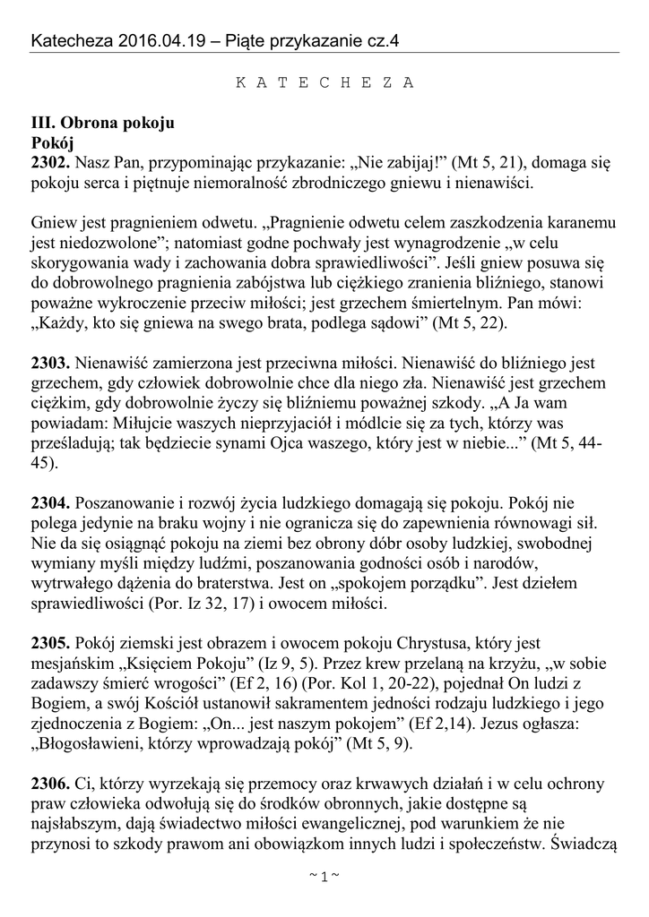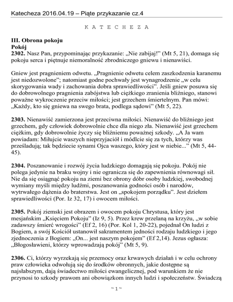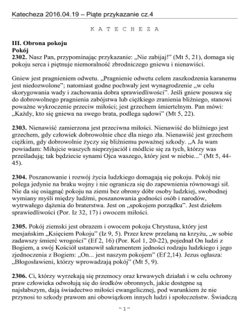 Katecheza 2016.04.19 – Piąte przykazanie cz.4 K A T E C H E Z A III