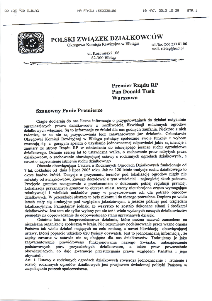 zapisy zawartc w ustawie nie sq obojqtne dla nas dzialkowc6w. Traktujemy je jako