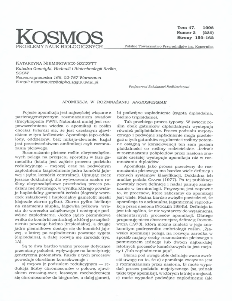 APOMIKSJA W ROZMNAŻANIU ANGIOSPERMAE