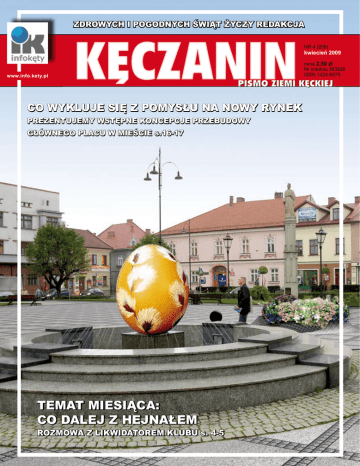 ZDROWYCH I POGODNYCH ŚWIĄT ŻYCZY REDAKCJA NR 4 (209) kwiecień 2009 www.info.kety.pl CO WYKLUJE SIĘ Z POMYSŁU NA NOWY RYNEK PREZENTUJEMY WSTĘPNE KONCEPCJE PRZEBUDOWY GŁÓWNEGO PLACU W MIEŚCIE s.16-17 TEMAT MIESIĄCA: CO DALEJ Z HEJNAŁEM ROZMOWA Z LIKWIDATOREM KLUBU s. 4-5 cena 2,50 zł Nr indeksu 363928 ISSN 1425-6975 Wielkanocne Święta zwiastują ożywienie i radość. Życzymy mieszkańcom Gminy Kęty oraz Naszym Gościom przeżycia ich w pogodnym nastroju, z uszanowaniem chrześcijańskich wartości i rodzimej tradycji. Józef Skudlarski Roman Olejarz Przewodniczący Rady Miejskiej w Kętach Z okazji nadchodzących Świąt Wielkiej Nocy pragniemy życzyć wszystkim odbiorcom i klientom Miejskiego Zakładu Wodociągów i Kanalizacji Sp. z o.o. w Kętach przeżycia ich w spokoju i radości, aby mogli przez wiele lat swego życia podziwiać piękno naszych okolic, ciesząc się zdrowiem płynącym z czystości naszych wód. Wszelkiej pomyślności w życiu codziennym oraz z racji naszej branży, szczególnie mokrego Śmigusa-Dyngusa życzą Zarząd i Pracownicy spółki 2 KĘCZANIN nr 4, kwiecień 2009 Burmistrz Gminy Kęty w numerze O ddajemy w Państwa ręce majowy numer „Kęczanina” w zmienionej szacie graficznej i w nowej ramówce. Redaguje go zespół INFO Kęty, który powstał w Gminnej Bibliotece Publicznej im. Ambrożego Grabowskiego. Co z tym „Hejnałem”? – Rozmowa z Nowoczesna biblioteka to miejsce Henrykiem Kurcem. nie tylko udostępniania systematyczstr. 4-5 nie gromadzonej literatury popularno-naukowej, ale baza szeroko rozumianej inDziś na zamkniętej Krakowskiej formacji. Decydując się królują koparki. na rozwój, wystąpiliśmy str. 6 z inicjatywą utworzenia w swoCyfrowe kino dlaprężnego Kęczan. ośrodka ich zasobach W Domu Kultury będziemy mieli informacji lokalnej, europejskiej najnowocześniejsze kino. oraz medialnej i prasowej. Jako 7 że projekt wpisuje się w str. oczekiwania społeczne, znalazł i akceptaNowe uznanie obwody dla dwóch kęckich cjęgimnazjów. władz samorządowych, które przeznaczyły pod jego str. 12 realizację własną kamienicę w Rynku pod nr 13. Urząd Gminy rozpoczął już proces modernizacji buKęczanie kradną wodę… i wpadają na dynku, który potrwa dwóchkary. lat. tym procederze. Terazok zapłacą W wyremontowanej kamienicy str. 13 znajdzie swą siedzibę INFO Kęty. Będzie Spis treści Od redaktora Zajączek to nie wszystko Nareszcie wiosna, jaka by nie była! Gdy pisze te słowa, za oknem pada śnieg… Ale ile on jeszcze może nas dręczyć zanim nie pokona go wiosna! Zaraz będą Święta Wielkanocne, więc w koło – na okładkach pism, portalach w necie, na wystawach, w telewizji – pojawią się rozkoszne, brykające zajączki i żółciutkie kurczaczki, kwitnące kwiatuszki i bazie. Irytuje mnie ta infantylna symbolika, sprowadzająca najważniejsze chrześcijańskie święto, do poziomu kreskówki z kolorowymi zwierzątkami. Nie przeszkadzałaby mi, gdyby z roku na rok nie była coraz większą zasłoną dymną dla najważniejszego przesłania tych świąt. Nie będę go tutaj wykładać – spokojnie! – bo każdy wie o co chodzi, a jak nie, to usłyszy o tym w kościele. Chcę tylko życzyć Państwu, abyście nie zagubili niegasnącej i wciąż odradzającej się Nadziei. Ona jest najważniejsza. Cała reszta jest tylko dodatkiem – słodkim, smacznym, czasem gorzkim lub mokrym jak dyngus. I tym też trzeba się cieszyć, pamiętając jednak o najważniejszym, że Chrystus zmartwychwstał. Wesołych Świąt! Wiersz Wielkanocny Jak może w przyszłości wyglądać tam redakcja kęcki Rynek? „Kęczani- na” i portalu internetostr. 16-17 wego, czytelnia książek i czasopism ze stałym, bezpłatnymkulturalne– dostępem Relacje i propozycje co wdo Internetu, stanowiska komputerowe, domu kultury, kinie i w bibliotece. służące m.in. do prowadzenia kursów str. 14-15 i 17-19 komputerowych dla mieszkańców, warsztatów dziennikarskich dla Pani Polecamy – Piękną książkę Zofii Wróbel kiosk o kapliczkach młodzieży, z wy- w Witkowicach. lokalnymi i dawnictwami str. 20 regionalnymi, barek, salka do odtwarzania filmów w zbiorach Relacja zgromadzonych Sesji rady Miejskiej i multimedialnych biblioteki, miejsce najważniejsze wieści z Ratusza na spotkania środowiskowe, studio str. 22-24 dla przyszłej telewizji internetowej, pomieszczenia dla obecnego Gminnego Centrum Informacji. Obecnie INFO Kęty ma Co robią młodzi muzycy – swoją tymczasową siedzibę pierwsza płyta The BridgeStorm. i jest czynne codziennie, z wyjątkiem niedziel i świąt. str. 28-29 Ma już na swym koncie pierwsze udane przedsięwzięcia, realizację dwóch promocyjnych filmów na DVD: Judocy na podium. Ciężarowcy „730 lat Kęt w Europie” oraz w „Pow I Lidze. Siatkarze Kęczanina żyteczna miastu.Polski Błogosławiona półfinale Pucharu str. 30-31Oba Matka Celina Borzęcka”. filmy można będzie obejrzeć bez- Wielkanocna Wiosna Zima się przełamała, Rzeka kry w dal uniosła, Wielkanoc śniegi zegnała A z nią… bazie i wiosna. Czas tajemnicy nastał… Cóż tkają boże krosna? Oto wzór życia przędą a w nim… bazie i wiosna. I już baźki w wazonie, Wiosna w sercu zakwita, Kęczanin – Pismo Ziemi Kęckiej Wydawca: Gminna Biblioteka Publiczna im. Ambrożego Grabowskiego w Kętach, INFO Kęty Adres redakcji: 32-650 Kęty, ul. Sobieskiego 19, Tel. 0.519 19 00 11, e-mail: [email protected] Redakcja czynna jest codziennie, od poniedziałku do piątku w godz. 10-15. Nakład 1300 egz. Druk: DTL Porąbka, ul. Chmielna 5, Tel. 0.33 810 60 38, e-mail: [email protected] KĘCZANIN nr 4, kwiecień 2009 Niechaj-że ta Wielkanoc Szczęściem domu rozkwita Niech przyniosą dostatek mazurki, barany i świąteczny dodatek-kopiec jaj „popisany” Szczęściem świąt niechaj tętni dom Wasz-dusza radosna… Wszystko magicznie sprawią … I te bazie i wiosna… AF 2008 Wielkanoc Redaktor naczel
