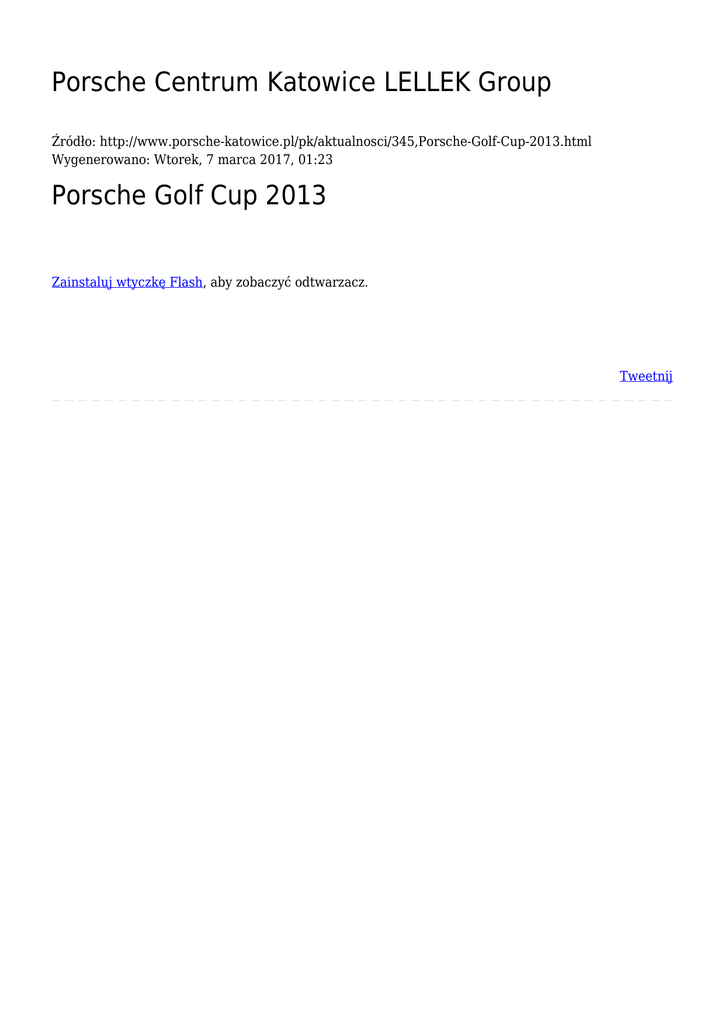 Porsche Centrum Katowice LELLEK Group Źródło: http://www.porsche-katowice.pl/pk/aktualnosci/345,Porsche-Golf-Cup-2013.html Wygenerowano: Wtorek, 7 marca 2017, 01:23 Porsche Golf Cup 2013 Zainstaluj wtyczkę Flash, aby zobaczyć odtwarzacz. Tweetnij