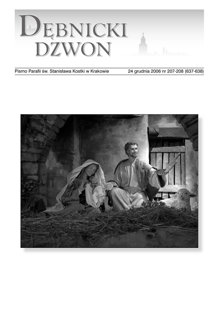 Pismo Parafii św. Stanisława Kostki w Krakowie 24 grudnia 2006 nr 207-208 (637-638) Słowo Dla Życia W szóstym miesiącu posłał Bóg anioła Gabriela do miasta w Galilei, zwanego Nazaret, do Dziewicy poślubionej mężowi, imieniem Józef, z rodu Dawida; a Dziewicy było na imię Maryja. Anioł wszedł do Niej i rzekł: „Bądź pozdrowiona, pełna łaski, Pan z Tobą, <błogosławiona jesteś między niewiastami>”. Ona zmieszała się na te słowa i rozważała, co miałoby znaczyć to pozdrowienie. Lecz anioł rzekł do Niej: „Nie bój się, Maryjo, znalazłaś bowiem łaskę u Boga. Oto poczniesz i porodzisz Syna, któremu nadasz imię Jezus. Będzie On wielki i będzie nazwany Synem Najwyższego, a Pan Bóg da Mu tron Jego praojca Dawida. Będzie panował nad domem Jakuba na wieki, a Jego panowaniu nie będzie końca”. Na to Maryja rzekła do anioła: „Jakże się to stanie, skoro nie znam męża?” Anioł Jej odpowiedział: „Duch Święty zstąpi na Ciebie i moc Najwyższego osłoni Cię. Dlatego też Święte, które się narodzi, będzie nazwane Synem Bożym. A oto również krewna Twoja, Elżbieta, poczęła w swej starości syna i jest już w szóstym miesiącu ta, która uchodzi za niepłodną. Dla Boga bowiem nie ma nic niemożliwego”. Na to rzekła Maryja: „Oto ja służebnica Pańska, niech mi się stanie według twego słowa!” Wtedy odszedł od Niej anioł. Służebnica Pańska Jakże piękna jest scena Zwiastowania. To najważniejsze zwiastowanie w całej historii świata. Pan Bóg przez wieki całe przygotowywał ludzi na to jedyne i cudowne zbawcze wydarzenie i stało się. Pełna łaski, Służebnica Pańska, wyraziła zgodę. Kilka razy dziennie powtarzamy słowa Maryi w modlitwie: „Anioł Pański” – “Oto ja służebnica Pańska”. Kochamy bardzo Maryję, także za te słowa. Pan Bóg przygotował Ją i wyróżnił wyjątkowym powołaniem, a Ona wiernie je wypełniła. Uwierzyła archaniołowi Gabrielowi, którego Pan Bóg posłał. Uwierzyła i całkowicie zdała się na wolę Bożą. Była pierwszą Osobą na ziemi, która przyjęła Jezusa do swego serca. „Któremu nadasz imię Jezus”: już samo imię Jezus oznacza: „Pan Bóg zbawia”, albo „Jest zbawieniem”. Przez co Pan Jezus od samego poczęcia jest przez samego Boga przedstawiony jako Zbawiciel. Również dziś Pan Bóg pyta każdego, tak jak Maryję i prosi: „Przyjmij Jezusa do swego serca!” Wielu tego zaproszenia nie słyszy. Dla nich nie będą to dobre Święta. Dla tych, którzy tak jak Maryja z radością przyjmą Boże zaproszenie będą one naprawdę jedyne i piękne. Oby były one piękne dla wszystkich. Maryja najlepiej z ludzi przyjęła Chrystusa i uczy nas jak mamy Go przyjmować. Kochamy Maryję, ale Ona jeszcze bardziej nas kocha i pragnie byśmy jak najlepiej przyjmowali Jej Syna. Ilekroć przygotowujemy się do przyjęcia Komunii św. polecajmy się gorliwie modlitwie Matki Jezusa i naszej Matki. Ks. Robert Wróblewski SDB 2 Życzenia Świąteczne Noc Narodzenia Pana – rozświetlona, rozgwieżdzona. Noc jednocząca wszystkich. W ubogiej stajence przyszła na świat Wielka Miłość. W Betlejemski Żłóbek patrzy cały świat. Prawdziwie Dobry Ojciec wie czego pilnie potrzebujemy, dlatego rzucił Syna na ziemię jak ziarno i ułożył Go w żłobie. To istne Tabernakulum, gdzie Jezus owinięty w pieluszki korporałów spoczywa do dziś. Betlejem trwa do dziś. Żłóbek jest na każdym ołtarzu. Od Chleba Żywego z Betlejem do Chleba Eucharystycznego jest tylko jeden krok. Patrzymy w żłóbek i nie może opuścić nas myśl niepojęta, ale prawdziwa, że Bóg raz stając się Człowiekiem nie przestaje już nigdy być Człowiekiem. Patrzymy w Żłóbek – na taką Miłość jaką Jezus ma do nas nasze serce może odpowiedzieć też miłością. Drodzy Czytelnicy Dębnickiego Dzwonu łamiąc się Opłatkiem życzymy: - uważnych oczu, które dostrzegą drobne sprawy codzienności i opromienią je Bożym światłem - kochających serc i wiele dobroci i życzliwości dzięki którym człowiek staje się lepszy - spotkań z ludźmi, którzy dodadzą odwagi i napełnia radością - by Jezus, Jego Miłość i Boże Narodzenie trwało nieustannie w nas - by narodzony Jezus umacniał wiarę i stał się prawdziwą nadzieją przyszłości Nie lękajcie się Bóg jest Miłością! Redakcja KRAKOWSKI ŚWIĘTY W SZARYM HABICIE 25 grudnia 1916 roku, 90 lat temu w pierwszy dzień Świąt Bożego Narodzenia odszedł do Pana, w opinii świętości, Brat Albert Chmielowski, założyciel Zgromadzenia Braci Posługujących Ubogim zwanych Braćmi Albertynami oraz Zgromadzenia Sióstr Posługujących Ubogim – Sióstr Albertynek. Ojciec Święty Jan Paweł II był wielkim czcicielem Brata Alberta. Wielokrotnie w swojej autobiografii wspomina, że duchowość Tego polskiego św. Franciszka była mu wzorem i odegrała dużą role w tworzeniu się i ugruntowaniu Jego powołania kapłańskiego. Jeszcze jako seminarzysta napisał pierwszą wersję utworu o Bracie Albercie, o przemianie znanego malarza Adama Chmielowskiego w opiekuna ubogich, który przez blisko trzydzieści lat swojego życia wśród nędzarzy realizował ewangeliczną zasadę miłości Boga i bliźniego. Pełną wersję utworu dramatycznego zatytułowanego „Brat Naszego Boga” napisał ks. Karol Wojtyła w okresie pracy duszpasterskiej w parafii św. Floriana. Sztuka ta ukazała się drukiem w 1979 roku, a w grudniu 1980 roku była wystawiona na deskach Teatru im. Juliusza Słowackiego w Krakowie i cieszyła się długo niesłabnącym powodzeniem. Karol Wojtyła już jako młody ksiądz, później biskup, kardynał i papież był wielkim orędownikiem wyniesienia na ołtarze Brata Alberta, czuwał nad jego procesem beatyfikacyjnym i kanonizacyjnym. 4 23 listopada 1969 roku, na dorocznym nabożeństwie o beatyfikację Brata Alberta kardynał Karol Wojtyła powiedział w homilii: …Brat Albert był 