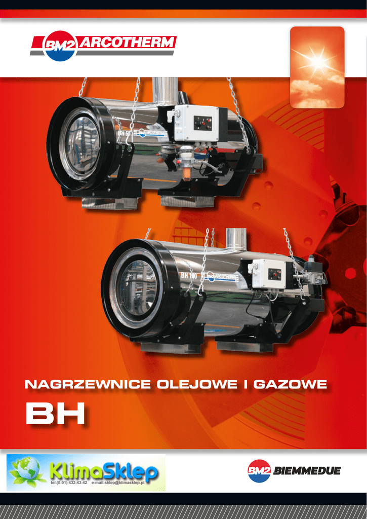 NAGRZEWNICE OLEJOWE I GAZOWE BH Przeznaczony szczególnie do ogrzewanie szklarni i obiektów inwentarskich Połączenie ogrzewania i wzbogacania zawartości CO2 Standardowe funkcje • Korpusikomoraspalaniazestalinierdzewnejwysokiej jakości • Automatyczny,oddzielnypalniknaolejlubgaz/LPG • Elektronicznakontrolapłomienia • Obracanywentylatordlałatwejkonserwacjilubwymiany palnika • Automatycznytermostatdowdmuchiwaniagorącego powietrzazkomorywstępnegospalaniaipocykluchłodzenia • Automatycznytermostat • Termostatbezpieczeństwachroniącyprzedprzegrzaniem • Przełącznikidlaogrzewanialubwentylacji • Niskakontrolanapięcia(tylkodlaBH50gazu) • Czujnikciśnieniapowietrzaigazu • Czteryodprowadzeniaspalinzkomoryspalaniawykonaneze zestalinierdzewnejzgodniezAISI430 • StopieńochronyelektrycznejIP56 • Możliwośćpodłączeniadotermostatu,humidostatu lubzegara • Możliwośćpodłączeniadokomputerasterującego klimatyzacją • Filtroleju • Armaturagazowa:filtrgazowyzzabezpieczeniem,reduktor ciśnienia,elektromagnetycznyzawórbezpieczeństwa,zawór elektromagnetyczny,stabilizatorciśnieniagazu • StopieńochronysilnikaIP55 • Rękawdodoprowadzaniapowietrzazzewnątrz • WykonanezgodniezUNIEN1020:2009oraz UNIEN13842:2005 MODEL BH50 BH100 BH50 BH100 PALIWO Olej Olej Gas Gas [kW] ---- ---- 49,6 100,8 [mbar] ---- ---- 20 20 ZUŻYCIEGAZU 3 [m /h] ---- ---- 4,41 8,95 MAKSYMALNAMOC GRZEWCZA [kW] ---- ---- 49,4 99,5 [mbar] ---- ---- 37 37 MAKSYMALNAMOC GRZEWCZA CIŚNIENIE CIŚNIENIE ZiemnyG20 LPGG31 ZUŻYCIEGAZU [m /h-kg/h] ---- ---- 1,75-3,55 3,50-7,11 MAKSYMALNAMOC GRZEWCZA [kW] 50,6 99,8 ---- ---- ZUŻYCIEOLEJU [l/h] 4,82 9,52 ---- ---- WYDAJNOŚĆWENTYLATORA 3 [m /h] 4.100 7.500 4.100 7.500 PRZYROSTTEMPERATURY PRZY20STC stC 50 50 50 68 3 Olej ZASILANIE V,-,Hz 230,1,50 230,1,50 230,1,50 230,1,50 MOCELEKTRYCZNA [W-A] 850-3,85 1.300-5,8 850-3,85 1.300-5,8 KLIMASKLEP ul. Legionów Dąbrowskiego 4 70-337, Szczecin tel.: (091) 432-43-42 fax.: (091) 432-43-40 e-mail: [email protected] www: www.KlimaSklep.pl Pieczątkadystrybutora