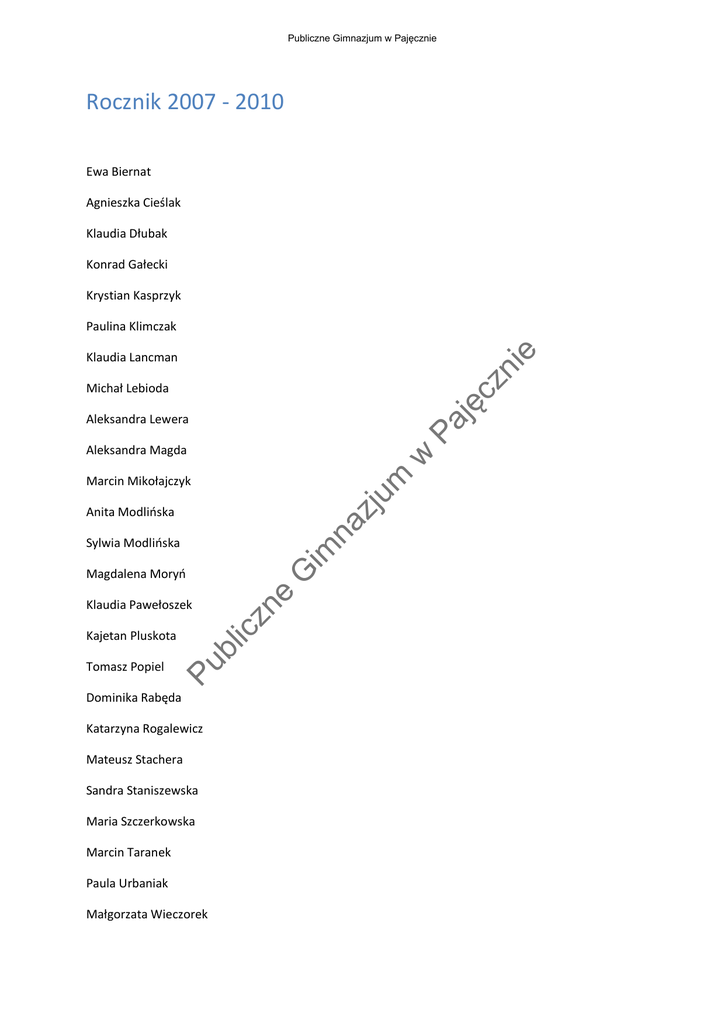 Rocznik 2007 - Publiczne Gimnazjum w Pajęcznie