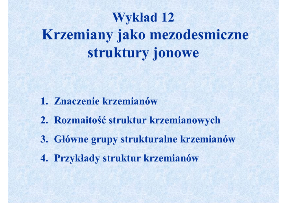 Wykład 12: Krzemiany jako mezodesmiczne struktury jonowe