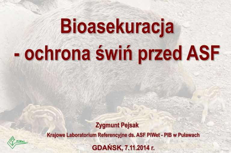 Bioasekuracja - ochrona świń przed ASF Zygmunt Pejsak Krajowe Laboratorium Referencyjne ds. ASF PIWet - PIB w Puławach GDAŃSK, 7.11.2014 r. Sytuacja w zakresie ASF w Polsce Dotychczas w Polsce 19 przypadków i 2 ogniska ASF wszystkie zlokalizowane w powiatach: sokólskim i białostockim Horczaki Górne (13) Skroblaki (9) Wiejki (8, 10, 12) Łuplanki Nowe (11) Józefowo (II) Zielona (I) Kolonia Mostowlany (14) Zaleszany Kolonia (15) Przypadek 1. Grzybowszczyzna, gm. Szudziałowo, 800 m. od granicy, 15.02.2014 r. dzik - 50 kg (PCR +, ELISA -) 4 Przypadek 2. Ozierany Wielkie gm. Krynki 2,5 km od granicy białoruskiej, 17.02.2014. locha, PCR +++ ELISA + Mało prawdopodobne by przypadki miały ze sobą związek. Grzybowszczyzna ~15 km Ozierany Wielkie Przypadek 3. Rudaki,(gm. Krynki) 97 dni później Locha - 100 kg, znaleziona w rzece granicznej Świsłocz PCR +++, ELISA + Mało prawdopodobne by przypadki lutowe i majowy miały ze sobą związek. ASF w Polsce a Pierwsze ognisko ASF w Polsce 22.07. 2014. 5 świń w chlewni ( wieś Zielona, gm. Gródek, pow. Białystok) Daty: 21. 07. 2014. próbki pobrane od 2 padłych świń PLW w Białymstoku wysłał do Puław. 22.07.2014. r. otrzymał wyniki dodatnie. 23.07. 2014. r. 3 kolejne świnie ( z 5, które były w gospodarstwie) zostały zabite, poddane badaniom z wynikiem dodatnim i poddane utylizacji. Historia: 19.07.Właściciel wezwał lekarza. Przybyły lekarz zbadał świnie, jedna miała gorączkę pozostałe klinicznie zdrowe. 19.07.2014. PLW w Białymstoku otrzymał informację od właściciela świń o złym stanie utrzymywanych przez niego świń i padnięciu jednego osobnika. 20.07. Padła kolejne świnia. 21.07. Urzędowy lekarz wykonał sekcję pobrał próbki i wysłał do PIWet – PIB. 22.07 otrzymał wyniki ASF dodatni. 23.07. dokonano uboju i utylizacji pozostały 3 świń. 17.07. przed zgłoszeniem podejrzenia padły 3 świnie, które właściciel zakopał. Py, 20-21 czerwca 2013 r. W odpowiednim czasie świnie odkopano i poddano utylizacji. Drugie ognisko ASF - Józefowo, 06.08.2014 (1 świnia w chlewni) PCR +++ Horczaki Górne (13) Skroblaki (9) Wiejki (8, 10, 12) Łuplanki Nowe (11) Józefowo (II) Zielona (I) Józefowo FRANCJA NIEMCY POLSKA Populacja świń w obszarze objętym ograniczeniami i obszarze ochronnym ( wg. Pirsztuk, 2014). Pogłowie świń (ARiMR) Obszar 1-10 świnie stada 30 323 7 040 podlaskie 618 159 Polska Wielkość stad 11-100 świnie stada świnie 96 942 3 535 388 203 W sumie świń: 515 468 (3,23%) W sumie stad: 11 831 (4,39%) 140 511 3 368 840 109 770 11 923 981 W sumie świń: 15 910 980 W sumie stad: 269 309 Woj. podlaskie Obszar objęty ograniczeniami Obszar ochronny Ogółem w obszarach 101+ Afrykański pomór świń stada 628 19 028 Świnie Stada 515 468 11 831 44 019 170 971 2 204 3 271 214 990 5 475 Proporcje między obszarem zakażonym, a całą Polską Co będzie jeżeli… African swine fever in wild boar in Poland Właściwości biologiczne ASFV Wirus ASF jest wyjątkowo oporny na działanie czynników środowiskowych przeżywalność: W glebie zanieczyszczonej zakażoną krwią - kilka miesięcy. W śledzionie zakopanej w ziemi - 280 dni. W kojcach w których przebywały świnie – 4 miesiące. W tuszach świń - 18 tygodni. We krwi w 4° C do 18 miesięcy. Inaktywacja wirusa po 30 minutach w 70° C lub 1 minucie w 80° C. Czym jest bioasekuracja w produkcji zwierzęcej ? • Bioasekuracja – Ochrona przed zewnętrznym i wewnętrznym biologicznym zagrożeniem. • Ogranicza możliwość wprowadzenia i roznoszenia chorobotwórczych mikroorganizmów. • Lokalizacja obiektu • • • • • • • • • Środki transportu Ogrodzenie Ludzie – procedury , praktyka, Ściółka Pasza Zwierzęta towarzyszące Utylizacja padłych zwierząt Zwalczanie szkodników Właściwe ogrodzenie fermy Zabezpieczenie przed dzikimi zwierzętami Ograniczenie dostępu pojazdów na fermę Co jeszcze możemy dostarczyć dzisiaj na Twoją fermę? SALMONELLA BAKTERIA WIRUS PRYSZCZYCY ASF PRRS Ograniczenie liczby wszelkich wizyt do niezbędnego minimum Ograniczenie liczby źródeł, z jakich pozyskiwane są zwierzęta do zasiedlenia fermy Ograniczenie liczby źródeł, z jakich pozyskiwane są zwierzęta na remont stada Wprowadzanie nowych knurów niesie ze sobą większe, w porównaniu do zakupu nasienia, ryzyko zawleczenia do stada nowych patogenów Nabywanie świń pochodzących wyłącznie ze stad, nad którymi sprawowany jest regularny monitoring. Czynniki ryzyka Inne zwierzęta Czynniki ryzyka Gryzonie Myszy stanowią ważny wektor szerzenia się chorób Czynniki ryzyka Szczury Szczury mogą przemieszczać około 3-4 km Okresowa deratyzacja Czynniki ryzyka Ptaki Jaskółka Szerzenie zakażenia pomiędzy sąsiadującymi pomieszczeniami czy budynkami inwentarskimi przez ptaki stanowi zagrożenie, zwłaszcza w ekstensywnych systemach chowu Samochody dostawcze CZYNNIKI RYZYKA Uczestnictwo w targach i pokazach • Wystawianie zwierząt na targach oraz pokazach, a następnie ponowne wprowadzanie ich bezpośrednio na fermę • Zwierzęta, które przebywały w miejscach, gdzie miały kontakt z wieloma innym świniami, należy izolować i traktować jak nowo wprowadzane na farmę • Przed wprowadzeniem do stada należy, w oparciu o opracowany uprzednio plan, poddawać takie zwierzęta badaniom i obserwacjom przez wyznaczony okres czasu (minimum 60 dni) CZYNNIKI RYZYKA Pasza Zmiana obuwia i odzieży ochronnej Prysznice Dezynfekcja obuwia Pojemniki do dezynfekcji obuwia należy umieszczać przy wszystkich wejściach na fermę, wejściach do obiektów fermy Należy pilnować by wszyscy ich używali ! 1. 2. 3. 4. Dezynfekcja pojazdów Zasady bioasekuracji - kwarantanna Kwarantanna wszystkich nabywanych świń oraz zwierząt wprowadzanych na farmę jest konieczna (min. 3 tygodnie, a lepiej 60 dni) Budynki, w których przeprowadzana jest kwarantanna powinny być całkowicie odizolowane od stada - zlokalizowane w od