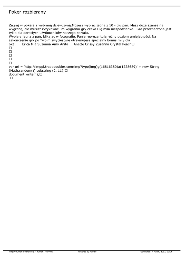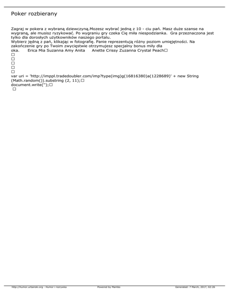 Zagraj w pokera z wybraną dziewczyną.Mozesz wybrać jedną z 10 - ciu pań. Masz duże szanse na