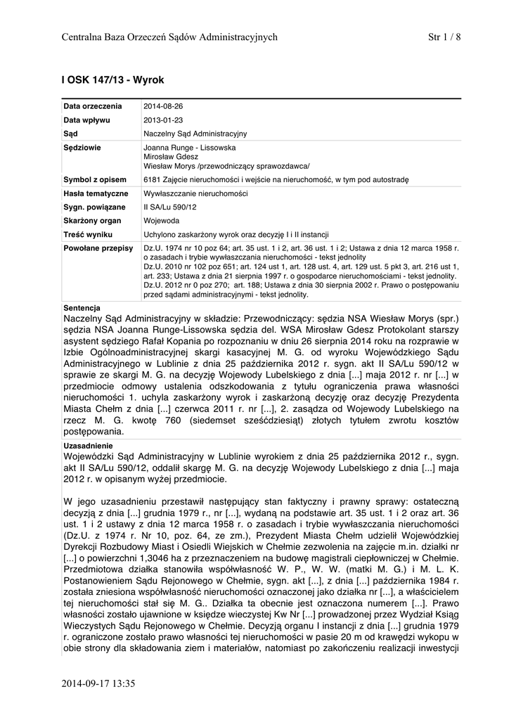 Centralna Baza Orzeczeń Sądów Administracyjnych Str 1 / 8 2014