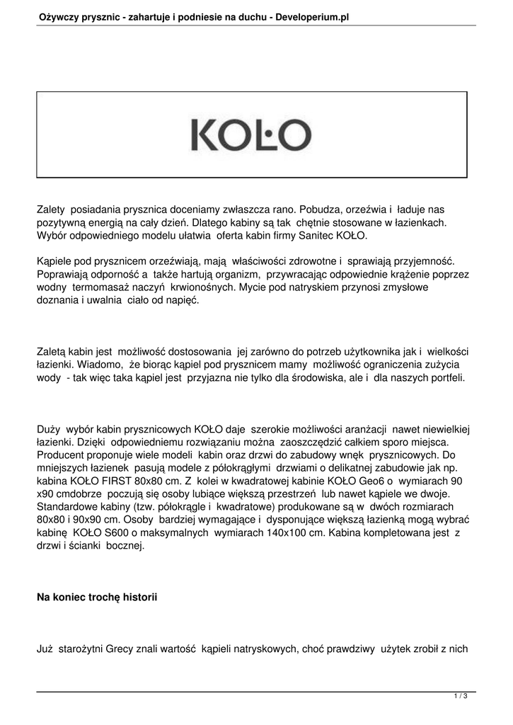 łazienki. Wiadomo, że biorąc kąpiel pod prysznicem mamy możliwość ograniczenia zużycia