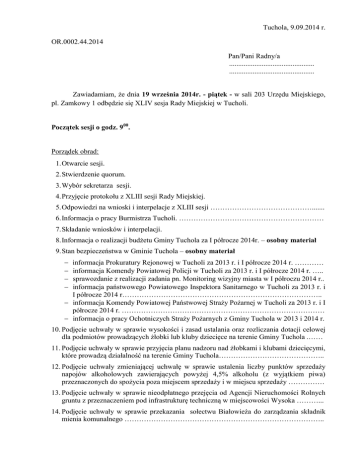 Tuchola, 9.09.2014 r. OR.0002.44.2014 Pan/Pani Radny/a