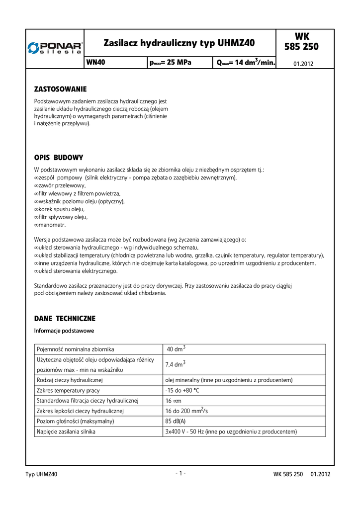 0585250 Karta katalogowa zasilacza UHMZ40.dft