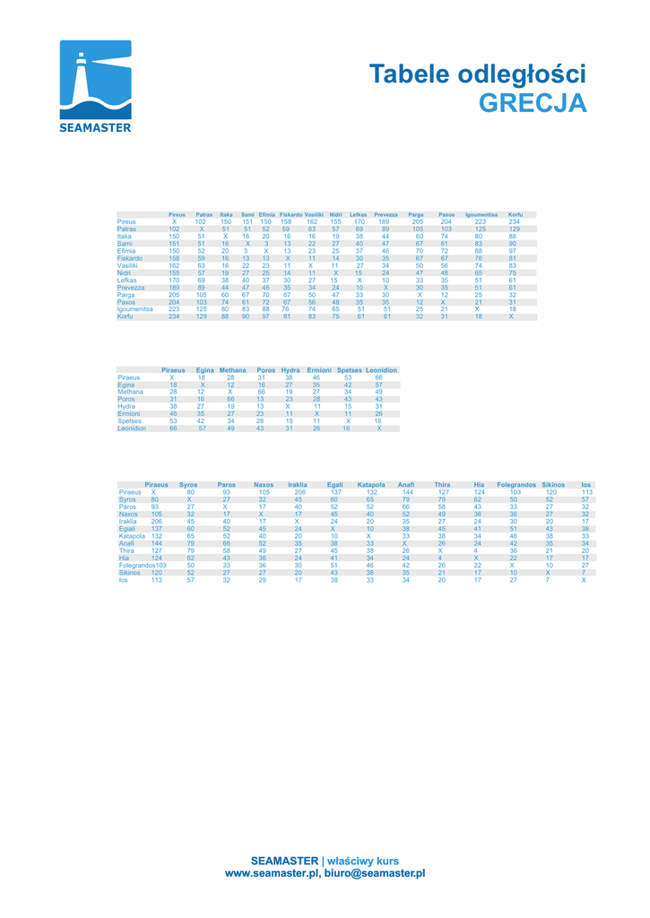 Tabele odleg³oœci GRECJA - SEAMASTER.pl | właściwy kurs