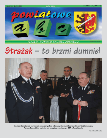 cena 2,15 zł (w tym 5% VAT) Strażak – to brzmi dumnie! Andrzej Dzierżawski (od lewej), oznaczony złotą odznaką, Zygmunt Sosnowski, Jan Wojciechowski, Roman Szczerbiak – członkowie zarządu powiatowego OSP w Radziejowie Foto: Jolanta Młodecka Aktualności samorządowe Czeka nas pracowity rok Jak co roku, na początku lutego, uczestniczyliśmy w Walnym Zebraniu sekcji polskiej naszego niemieckiego partnera w Wahrenholz. Sekretarz Partnerstwa z Wesendorf podsumowuje pracę w roku 2012 Stronę polską reprezentowali przedstawiciele samorządu powiatowego: Henryk Gapiński, starosta, Jarosław Kołtuniak, wicestarosta i Grzegorz Piasecki, członek zarządu oraz Alicja Górczyńska, Wanda Wiatrowska i Zbigniew Zasada – członkowie zarządu Stowarzyszenia Rozwoju Powiatu Radziejowskiego. Przewodniczący sekcji polskiej w Wahrenholz – Tersten Holzhausen – witając przybyłych na walne zebranie, podkreślił, że na partnera polskiego można zawsze liczyć. Nie straszna nam pogoda i uciążliwa podróż. Raz w roku siadamy wspólnie do stołu, aby podsumować nasze działania i zaplanować nowe. Dyskutujemy, znajdujemy ciekawe rozwiązania i formy Starostowie powiatu radziejowskiego Henryk współpracy w kręgu Gapiński (od lewej) i Jarosław Kołtuniak przekazali partnerskim. drobny upominek Christiane Dittmann-Martin, przewodniczącej partnerstwa pięciu krajów Burmistrz Wahrenholz, Friedhilde Evers w swym wystąpieniu podkreśliła: „Nasza współpraca to 11 wspaniałych lat. Dziękuje władzom powiatu radziejowskiego, że podobnie jak my dążą do zacieśniania kontaktów i stwarzają przyjazne warunki do pogłębiania partnerstwa.” Bardzo pracowitym dniem okazał się drugi dzień naszej wizyty w Wahrenholz. Po śniadaniu usiedliśmy do rozmów i nakreślenia najważniejszych działań w roku 2013. Wraz z partnerem niemieckim będziemy realizować dwa projekty młodzieżowe: jeden z cyklu „Produkty historii” w Berlinie i Warszawie w terminie od 1 do 7 lipca, drugi w Pesc (Węgry) pod hasłem: „Europa dla Obywateli”. Uczestniczyć w nim będą oprócz młodzieży z Polski także młodzi ludzie z Francji, Litwy, Niemiec i Węgier. Z zadowoleniem przyjęła strona niemiecka nasza propozycję zorganizowania dla grupy niemieckich gospodyń warsztatów kulinarno-tanecznych pod hasłem: „Spotkanie z kuchnią i folklorem kujawskim”. Planowany termin przyjazdu pań z Wahrenholz to 21-24 czerwca 2013 r. Również w bieżącym roku odwiedzi nasz powiat grupa składająca się z przedstawicieli samorządu gminy Wahrenholz. W trakcie dyskusji starosta radziejowski i wiceburmistrz Wahrenholz ustalili termin i tematykę wizyty. Będzie to wizyta studyjna, w trakcie której obie strony omówią różne sposoby pozyskiwania środków unijnych i dalszą współpracę w tym temacie. W czasie dyskusji nad planem na bieżący rok (od prawej) Henryk Gapiński, Grzegorz Piasecki, Wanda Wiatrowska i Alicja Górczyńska Jak w latach ubiegłych spotkaniu towarzyszyła atmosfera przyjaźni i życzliwości. Tekst: Wanda Wiatrowska Foto: Zbigniew Zasada Podziękowanie za pasję i ukochanie sportu W Starostwie Powiatowym w Radziejowie, 13 lutego 2013 r., odbyło się uroczyste spotkanie władz powiatu z wyróżnionymi działaczami sportowymi, trenerami oraz osobami zaangażowanymi w rozwój sportu na terenie powiatu radziejowskiego. Starosta podziękował wszystkim zaproszonym działaczom, którzy widzą i rozumieją wielką rolę sportu w kształtowaniu dobrego ducha zdrowej rywalizacji. Wyróżnionym działaczom sportowym, rekomendowanym przez burmistrzów i wójtów oraz radnych powiatowych, podziękowano za pasję, trud i oddanie idei upowszechniania kultury fizycznej i sportu. W uznaniu za wieloletnie działania wyróżnienia z rąk starostów i przewodniczącego Rady Powiatu otrzymali: Cieślewicz Sławomir, Belter Jacek, Błaszczyk Ryszard, Braer Marek, Cybulski Piotr, Dąbrowska Agnieszka, Dulęba Robert, Głowacki Robert, Grzegorzewski Roman, Idziak Konstanty, Kapeliński Robert, Karpiński Zbigniew, Kocent Tomasz, Krupiński Piotr, Krzyżański Dariusz, Kubisiak Edward, Kurant Ryszard, Lewandowski Paweł, Łaszkiewicz Władysław, Maciejewski Maciej, Maciejewski Tadeusz, Małkowski Cezary, Nocoń Jan, Parecki Andrzej, Pilak Witold, Płoszaj Halina, Radkowski Włodzimierz, Rogacki, Longin, Rolewski Janusz, Rosiński Sławomir, Siutkowski Piotr, Siwiński Robert, Trząsalski. Roman, Walczak Jerzy, Wojciechowski Piotr, Wysocki Krzysztof, Zaremba Janusz, Zasada Waldemar, Zieliński Piotr, Żernicki Dariusz, Żywica Artur. Spotkanie było okazją do podsumowania działalności sportowej powiatu. Gratulujemy nagrodzonym działaczom, życzymy znakomitych osiągnięć i kolejnych spektakularnych sukcesów. Tekst/Foto: Małgorzata Patyk Informacje 1 Druhowie z OSP zawsze blisko ludzi Zarząd Oddziału Powiatowego Związku OSP w Radziejowie podsumował pracę w 2012 r. na uroczystym posiedzeniu 17 stycznia 2013 r. w Zajeździe „Łokietek” w Płowcach. Prezes zarządu dh Roman Szczerbiak przywitał przybyłych na spotkanie druhów oraz zaproszonych gości: Stanisława Pawlaka, radnego Sejmiku Województwa Kujawsko-Pomorskiego, Henryka Gapińskiego, starostę radziejowskiego. „W naszym powiecie ochotnicze straże pożarne funkcjonują w każdej gminie. Ponad tysiąc strażaków, skupionych w 33 jednostkach, gotowych jest nieść pomoc ludziom, walczyć z żywiołem, ratować mienie i dobytek. Jesteśmy także organizatorami wielu form kulturalnych, których adresatem są dzieci i młodzież z naszego powiatu. Dzisiejsze posiedzenie jest okazją, aby podsumować pace, ale także podziękować wszystkim druhom za ich oddanie i zaangażowanie. Gratuluję wszystkim dzieciom – uczestnikom Turnieju Wiedzy Pożarniczej. Reprezentanci powiatu radziejowskiego, którzy brali udział w eliminacjach na szczeblu wojewódzkim, zajęli czołowe miejsca” – powiedział Roman Szczerbiak w swo