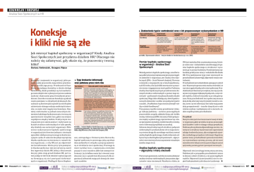 EDUKACJA i rozwój Analiza Sieci Społecznych w HR Koneksje i kliki nie są złe Jak mierzyć kapitał społeczny w organizacji? Kiedy Analiza Sieci Społecznych jest przydatna działom HR? Dlaczego nie należy się załamywać, gdy okaże się, że pracownicy tworzą kliki? Dariusz Ambroziak, Grzegorz Rajca K 96 Personelplus | luty2012 Kontakty i znajomości w organizacji, jakie posiada każdy pracownik, mają istotne przełożenie na wyniki jego pracy. Przedstawiciel handlowy posiadający kontakty w dziale obsługi technicznej, dziale produkcji czy też marketingu może dzięki nim wykonywać pewne zadania szybciej i skuteczniej poza formalnymi procedurami. Szeroko rozumiane koneksje są jednak często pomijane w oficjalnych dyskusjach. Rozumiane są bowiem jako sposób na nieoficjalne załatwianie różnego rodzaju osobistych interesów, co może mieć negatywne konotacje. Kontakty nieformalne są jednak naturalnym elementem ludzkiego funkcjonowania i tworzą się spontanicznie wszędzie tam, gdzie ma miejsce współpraca między ludźmi. Praktycznym rozwiązaniem jest zatem pomiar i wpływanie na kształt struktur nieformalnych w taki sposób, aby działały one na korzyść organizacji. Efektywne wykorzystanie kapitału społecznego w organizacji jest bowiem jednym z istotnych sposobów zdobywania przewagi na konkurencyjnym rynku. O sukcesie decyduje najczęściej tkanka społeczna wytworzona w ramach danej organizacji, a rolą HR jest jej odpowiednie kształtowanie. Warto przy tym pamiętać, że tkanka społeczna i tak się wytworzy, nawet bez ingerencji działu HR. Jedną z kluczowych decyzji, jakie stoją przed działem HR, jest zatem podjęcie lub brak działań wpływających na formującą się sieć powiązań nieformalnych w organizacji. Według dr Karen Stephen- ► Typy brokerów informacji oraz pełniona przez nich rola Typ brokera Rola, jaką pełni w sieci społecznej Connector Łącznik w procesie wymiany informacji. Łącznicy stanowią węzeł łączący poszczególne rejony sieci, zapewniając efektywną komunikację między nimi. Łącznicy nie muszą sami dysponować kluczowymi danymi. Ich wartość polega na efektywnym pośredniczeniu w wymianie informacji w strukturze nieformalnej. Maven Rodzaj brokera, który spełnia dwie główne role. Podobnie jak connector maven łączy ze sobą inne jednostki w sieci, zapewniając efektywną komunikację między nimi. W odróżnieniu jednak od łączników maveni sami dysponują także przydatną wiedzą, którą chętnie dzielą się z innymi jednostkami w sieci. Salesman Typ brokera obdarzony wyjątkową charyzmą i darem przekonywania. Dzięki tym cechom salesman nie tylko przekazuje kluczowe informacje do kolejnych rejonów sieci, ale również skutecznie przekonuje pozostałych pracowników do swoich racji. Salesmani są szczególnie przydatni, gdy celem jest rozprzestrzenianie w strukturze nieformalnej nowych idei oraz promowanie określonych poglądów i przekonań. ■ źródło | Instytut Analiz im. Karola Gaussa sp. z o.o. Opracowane na podstawie Gladwell M., The Tipping Point. How Little Things Can Make a Big Difference, Little, Brown and Company 2000. son, antropologa z Uniwersytetu Harvarda, kapitał społeczny to przewaga, jaką uzyskuje dana jednostka w związku z pozycją zajmowaną w strukturze sieci społecznej. Przewaga ta może wynikać m.in. z zajmowania centralnej pozycji w sieci transferu dóbr lub istotnych informacji. Jej źródłem może być również znajdowanie się w sąsiedztwie kluczowych dla organizacji jednostek mających dostęp do istotnych zasobów. ► Zestawienie typów centralności wraz z ich proponowanym wykorzystaniem w HR Typy centralności/ /miernik i cel pomiaru Centralność betweenness Centralność stopnia Co mierzy Jak często dany węzeł jest elementem ścieżek łączących wszystkie inne węzły. Przykład zastosowania Identyfikacja osób kluczowych dla efektywnego przepływu danych i zasobów w sieci. Liczbę połączeń, jakie dany węzeł posiada. Centralność bliskości Średnią odległość między danym węzłem a wszystkimi innymi węzłami danej sieci. Centralność wektorowa Powiązanie danego węzła z innymi, silnymi węzłami w sieci. Identyfikacja gwiazd sieciowych i jednostek posiadających szczególnie szerokie grono kontaktów. Szacowanie prędkości rozprzestrzeniania się informacji wychodzących z danego węzła. Identyfikacja osób mających potencjalnie największy wpływ na sieć społeczną. ■ źródło | Opracowanie własne – Instytut Analiz im. Karola Gaussa sp. z o.o. (2011). Pomiar kapitału społecznego w organizacji – Analiza Sieci Społecznych Metodą pomiaru kapitału społecznego, umożliwiającą odkrycie pozycji zajmowanej przez poszczególne jednostki w organizacji, jest Analiza Sieci Społecznych (SNA – Social Network Analysis). Pierwsze wzmianki o niej pojawiły się w latach pięćdziesiątych XX wieku, choć jej źródła teoretyczne są znacznie starsze i sięgają jeszcze teorii grafów. Podstawą Analizy Sieci Społecznych jest przedstawianie złożonych struktur nieformalnych w postaci map sieciowych – graficznych wizualizacji kształtu tkanki społecznej. Mapy takie składają się z dwóch podstawowych elementów: węzłów oraz połączeń (patrz rysunek: „Przykładowa mapa sieciowa (transfer wiedzy w dziale handlowym)". Przy pomocy węzłów można przedstawiać różnego rodzaju podmioty – zarówno poszczególnych pracowników, zespoły, oddziały firmy, jak i źródła wiedzy i informacji (CRM, Intranet). Z kolei połączenia między węzłami mogą reprezentować np. relacje (przyjaźnie, kontakty), ścieżki transferu wiedzy, norm i informacji (przykłady na rysunku). Zebranie danych dotyczących struktury połączeń nieformalnych i przekształcenie ich w mapę sieciową otwiera drogę dla szerokiego wachlarza metod analizy kapitału społecznego. Analiza taka może odbywać się na dwóch głównych p