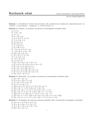 Zadanie 3. Sprawdzić, czy poniższe wyrażenia są tautologiami rachunku zdań: