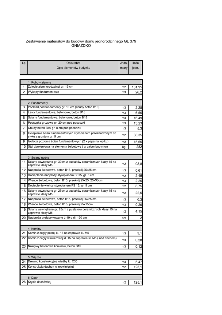 Zestawienie materiałów do budowy domu jednorodzinnego GL 379