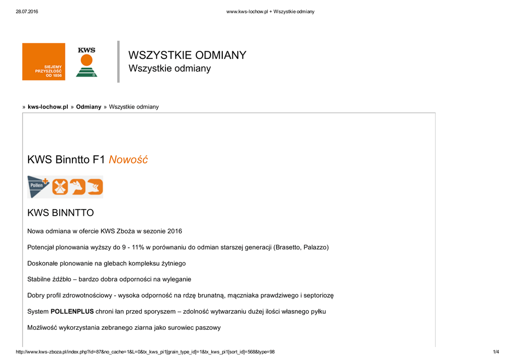 WSZYSTKIE ODMIANY KWS Binntto F1 Nowość - Agro