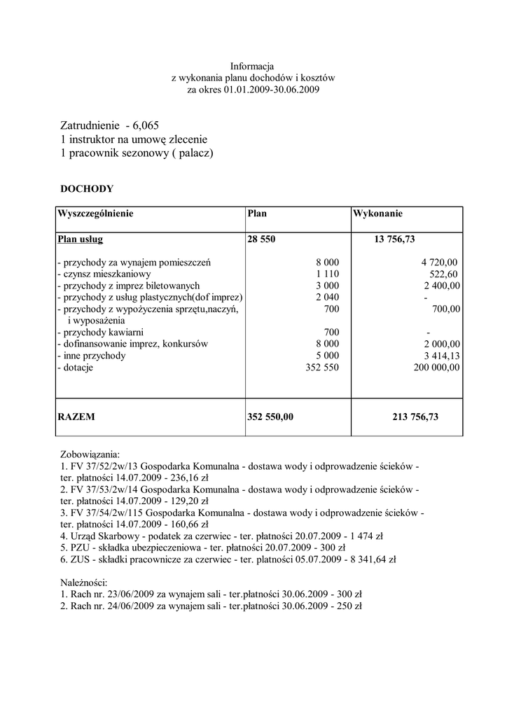 GOK informacja za I półrocze 2009
