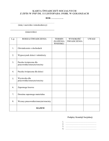 karta świadczeń socjalnych z zfśs w psp im. 11