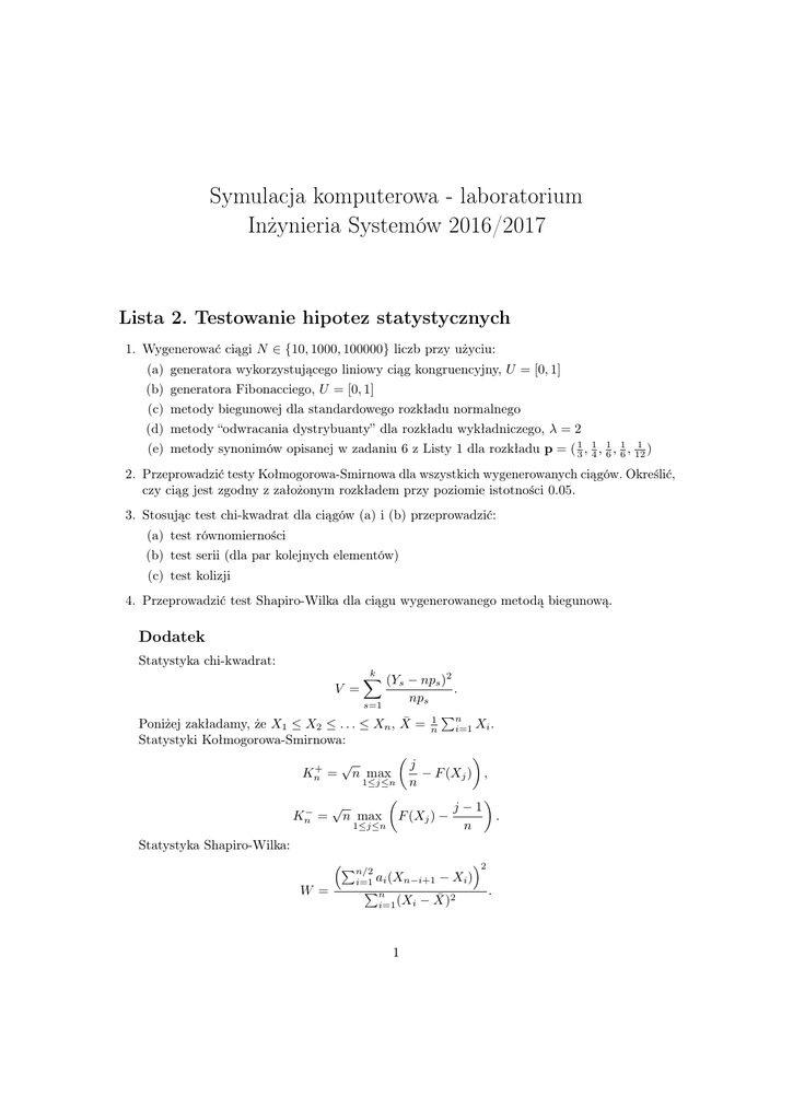 Lista 2. Testowanie hipotez statystycznych