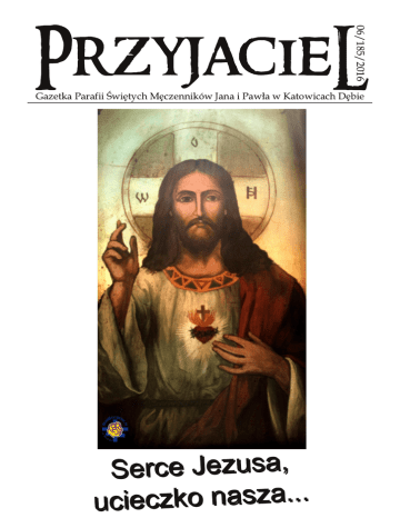 06/185/2016 PrzyjacieL Gazetka Parafii Świętych Męczenników Jana i Pawła w Katowicach Dębie S e rce J e zu sa , . . . a z s a n o k z c e i uc CZAS, KTÓRY ZA NAMI Dnia 26 kwietnia grupa pielgrzymów naszej parafii wraz z księdzem Proboszczem wyruszyła na pielgrzymi szlak. Pierwszym miejscem które odwiedziliśmy był Głogówek sanktuarium Matki Bożej Loretańskiej. W tym sanktuarium uczestniczyliśmy we Mszy św. i zapoznaliśmy się z historią tego miejsca. Następnie udaliśmy się do Prudnika sanktuarium św. Józefa miejsca gdzie przebywał Prymas Polski kardynał Stefan Wyszyński w latach pięćdziesiątych. Ostatnim miejscem pielgrzymowania był Park Miniatur Sakralnych w Olszowej. Obejrzeliśmy w miniaturze katedrę Wawelską w Krakowie, bazylikę i plac św. Piotra w Rzymie, sanktuarium Matki Bożej w Fatimie, katedrę Santa Maria Del Fiore we Florencji, katedrę i krzywą wierzę w Pizie, katedrę Matki Bożej Wniebowziętej w Sienie, bazylikę św. Marka w Wenecji, bazylikę Grobu Pańskiego w Jerozolimie, katedrę Notre Dame w Paryżu, sanktuarium w św. Lipce, katedra św. Jakuba Apostoła i św. Agnieszki w Nysie, kościół Najświętszej Marii Panny w Krakowie kościół Wniebowzięcia Najświętszej Marii Panny w Gdańsku, katedra św. Krzyża w Opolu, sanktuarium Góra św. Anny, sanktuarium na Jasnej Górze. Po krótkim odpoczynku wróciliśmy do Katowic. O D WI E D ZI N Y CH O RYCH PARAF I AN Z N AJ Ś WI Ę TS ZYM S AKRAM E N TE M : 3 czerwca (osiedle św. Ducha) 4 czerwca (pozostała część parafii) O D WI E D Z I N Y P RZ E D O D P U S TE M PARAF I ALN YM : 24 czerwca (osiedle św. Ducha) 25 czerwca (pozostała część parafii) 2 Z E WZ G L Ę D U N A O D P U S T N I E B Ę D Z I E O D WI E D Z I N W L I P C U PAP I E S KI E I N TE N CJ E AP O S TO LS TWA M O D LI TWY: O G Ó LN A: Aby osoby w podeszłym wieku, zepchnięte na margines i samotne znajdowały, również w wielkich miastach, okazje do spotkania i solidarność. M I S YJ N A: Aby seminarzyści, nowicjusze i nowicjuszki spotykali formatorów żyjących z radością Ewangelią, którzy mądrze przygotują ich do misji, jaką mają pełnić. CZAS, KTÓRY PRZED NAMI 3 cze rwca – Uroczystość Najświętszego Serca Pana Jezusa. Serce Chrystusa kryje w sobie orędzie do każdego człowieka; przemawia także do współczesne świata. 4 cze rwca – Wspomnienie Niepokalanego Serca Najświętszej Maryi Panny. Niech każde serce człowieka przytuli się do Twojego Serca Maryjo. 1 9 cze rwca – zapraszamy na IX Rodzinny Festyn Parafialny. 2 4 cze rwca – uroczystość Narodzenia św. Jana Chrzciciela. 2 6 cze rwca – św. męczenników Jana i Pawła – odpust parafialny. Na uroczystą sumę odpustową o godz. 1 2-tej zapraszamy dzieci w strojach komunijnych, dzieci sypiące kwiaty, poczty sztandarowe, górników do baldachimu i wszystkich parafian. 2 9 cze rwca – uroczystość świętych Apostołów Piotra i Pawła. 3 INTENCJE NA CZERWIEC CZAS, KTÓRY ZA NAMI 0 1 . 0 6 . 2 0 1 6 r. Ś rod a * Wsp om n i e n i e św. J u styn a * 8.00 + Annę Borowik w I rocznicę śmierci Po Mszy św. nowenna do MBNP 1 8.00 Wspólna Msza św. za żywych Po Mszy św. nowenna do MBNP 0 2 . 0 6 . 2 0 1 6 r. I Czwa rte k 7.30 Adoracja Najświętszego Sakramentu ofiarowana za kapłanów 8.00 O nowe powołania kapłańskie, zakonne i misyjne 1 7.00 Adoracja Najświętszego Sakramentu 1 8.00 + Józefa Kozik 40 rocznica śmierci, + Eleonorę, Ewę, Jerzego 0 3 . 0 6 . 2 0 1 6 r. I P i ąte k * U r. N a j świ ę tsze g o S e rca P. J e zu sa * 8.00 W intencji żyjących i ++ czcicieli NSPJ i za ofiarodawców 1 7.00 Adoracja Najświętszego Sakramentu prowadzona przez Grupę Krwi Chrystusa 1 8.00 + Teresę Bartosz w I rocznicę śmierci 0 4 . 0 6 . 2 0 1 6 r. I S ob ota *Wsp . N i e p oka l a n e g o S e rca N M P * 7.30 Godzinki do MB 8.00 Za grzechy popełnione przeciw Niepokalanemu Sercu Maryi od Róż Różańcowych 1 7.30 Różaniec 1 8.00 + Marię Rzepa w XV rocznicę śmierci i ++ rodziców z obu stron 0 5 . 0 6 . 2 0 1 6 r. 1 0 N i e d zi e l a Zwykła 7.00 Za Parafian 9.00 + Stanisława Olko od sąsiadów z ul. Jabłoniowej 54 1 0.30 Zajęta 1 2.00 + Władysława Lindner w IX rocznicę śmierci 1 5.30 Nabożeństwo do NSPJ 1 6.00 + Jana Góreckiego w XI rocznicę śmierci, Mariannę i Wacława Dudek, Franciszka Pałę, Alfredę Wójcikowską , Zosię, Adelcię, Małgorzatę Solarską 4 0 7 . 0 6 . 2 0 1 6 r. Wtore k 8.00 + Augustyna Węgiel od Zdzisława i Alicji Pyzik z rodziną 1 8.00 W int. Roberta z okazji 80 – tych urodzin 0 8 . 0 6 . 2 0 1 6 r. Ś rod a * Wsp om n i e n i e św. J a d wi g i , król owe j * 8.00 + Kazimierę Podpora Po Mszy św. nowenna do MBNP 1 8.00 + Jana w XV rocznicę śmierci , Jolantę, Mariannę i Bolesława, Bronisławę i Andrzeja 0 9 . 0 6 . 2 0 1 6 r. Czwa rte k 8.00 + Henryka Sitek w dniu urodzin 1 7.00 Adoracja Najświętszego Sakramentu 1 8.00 + Matyldę Dronia od lokatorów z ul. Gruszowej 9 INTENCJE NAZA CZERWIEC CZAS, KTÓRY NAMI 0 6 . 0 6 . 2 0 1 6 r. P on i e d zi a łe k 8.00 W intencji Rozalii Jessa 75 lat urodzin 1 8.00 + Andrzeja Drobisz od lokatorów z ul. Jabłoniowej 35 a 1 0 . 0 6 . 2 0 1 6 r. P i a te k 8.00 + męża, rodziców, córkę i teściów 1 8.00 + Tadeusza Szołtysek 23 rocznica śmierci, + Teodora, Halinę i Stefana Sokołowskich, ++ siostry braci i ++ dziadków 1 1 . 0 6 . 2 0 1 6 r. S ob ota * Wsp om n i e n i e św. B a rn a b y, Ap ostoła * 8.00 + Alfreda Gajda w 25 rocznicę śmierci, ++ Weronikę i Antoniego 1 3.00 Msza św. z okazji „ Dni Dębu” 1 7.30 Różaniec 1 8.00 + Annę Niemiec w I rocznicę śmierci i Leona Niemiec XXI rocznicę św. 5 INTENCJE NA CZERWIEC CZAS, KTÓRY ZA NAMI 1 2 . 0 6 . 2 0 1 6 r. 1 1 N i e d zi e l a Zwykła 7.00 ++ Katarzynę i Władysława Bernackich w kolejną rocznicę śmierci Antoninę i Ludwika Pituła 9.00 + Józefa Szypuła 1 0.30 + Waldemara Wienczerz w XI rocznicę śmierci, Jadwigę i Wilhelm