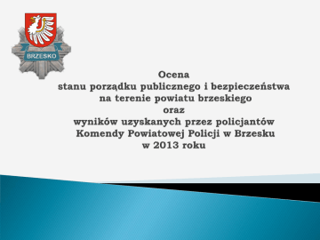 Stan etatowy Stan zatrudnienia Wakaty 143 132 11 W trakcie 2013 r.: 4 funkcjonariuszy przyjęto do służby; 10 f-szy zwolniono ze służby; 6 f-szy przeniesiono do innych jednostek; 4 f-szy przeniesiono z innych jednostek. W 2013 r. do Komendy Powiatowej Policji w Brzesku wpłynęło ogółem 23 (37) skarg oraz 6 skarg pozostało do rozpatrzenia z roku ubiegłego. Z tego: 14 (10) skarg zostało przekazanych do załatwienia wg właściwości; 15 (23) załatwiono we własnym zakresie. Skargi te m.in. dotyczyły: 23 (26) – czynności procesowych, administracyjnych wynikających z Ustawy o Policji lub innych przepisów; 4 (3) – sposobu załatwienia skargi; 2 (3) – dot. innej problematyki. Kierownictwo w 2013 r. przyjęło 26 (34) interesantów. Ćwiczenia sztabowe „NARKOMAN 2013” W dniu 25 października 2013 r. Komenda Powiatowa Policji w Brzesku wspólnie z Komendą Powiatową Państwowej Straży Pożarnej oraz Szpitalem Powiatowym w Brzesku brała udział w ćwiczeniach sztabowych, których głównym tematem było prowadzenie akcji ratowniczej w przypadku wystąpienia zagrożenia zdrowia i życia personelu szpitala, oraz organizacja działań pościgowo – blokadowych za uzbrojonym sprawcą napadu. IV Pluton IX Kompanii NPP w którego skład wchodzą funkcjonariusze KPP Brzesko W 2013 roku IV Pluton IX Kompanii NPP był formowany 16 razy. Poza trzema szkoleniami w pozostałych przypadkach funkcjonariusze brali udział w zabezpieczeniu meczy I ligi i Ekstraklasy piłki nożnej, a także przejazdu kibiców. Zabezpieczenie rozgrywek piłkarskich na stadionie miejskim w Brzesku Na stadionie miejskim w Brzesku w 2013 roku zostało rozegranych 16 meczów Okocimskiego Klubu Sportowego w ramach rozgrywek I ligi piłki nożnej. Spośród tej liczby, zakwalifikowanych 6 spotkań zostało jako mecze podwyższonego wzięło udział w ryzyka. W zabezpieczeniu sumie 967 funkcjonariuszy (w tym mecze podwyższonego ryzyka 648 Policjantów). Zabezpieczenie imprez masowych w 2013 roku W 2013 roku Policjanci KPP w Brzesku zapewniali bezpieczeństwo uczestników następujących imprez masowych o charakterze artystyczno – rozrywkowym: • „Dni Brzeska” – 14–16 czerwiec 2013 r. • „III Małopolskie Dni Błogosławionego Jana Pawła II” – 23 czerwiec 2013 r. • „Dni Czchowa” – 27-28 lipca 2013 r. • „Święto Grzyba w Borzęcinie” – 24-25 sierpnia 2013 r. W zabezpieczeniu imprez masowych udział wzięło w sumie 97 Policjantów Komendy Powiatowej Policji w Brzesku. Funkcjonariusze KPP w Brzesku brali również udział w zabezpieczeniu „Turnieju Rycerskiego w Dębnie”, który ze względu organizacji na terenie obiektu muzealnego nie jest zaliczany do imprez masowych. Policjanci zabezpieczali wiele imprez o charakterze lokalnym (festyny, pikniki rodzinne, itp.). Ogólnopolska Noc Profilaktyki „Życie nie po to jest by brać”, „Daj mi pół litra miłości i działkę rozmowy!”, „Żyj bez przemocy”, „Żyj bez agresji” to tylko nieliczne z haseł, które widniały na banerach przygotowanych przez szkoły gminy Brzesko. Po happeningu, w Regionalnym Centrum KulturalnoBibliotecznym na uczestników akcji czekał program artystyczny przygotowany przez młodzież. Dużym zainteresowaniem cieszyły się pokazy tańców oraz sztuk i sportów walki. Na terenie podległym KPP Brzesko funkcjonuje 50 szkół podstawowych. Przeprowadzono 146 spotkań z uczniami klas IV,V,VI w trakcie których przeszkolono 5378 uczniów i 284 nauczycieli. Policjanci zrealizowali: 100 kontroli wspólnie z przedstawicielami Gminnych i Miejskich Komisji ds. Rozwiązywania Problemów Alkoholowych w placówkach detalicznych i gastronomicznych pod kątem sprzedaży i podawania alkoholu osobom małoletnim; 133 samodzielnych kontroli; wzięli udział w 110 posiedzeniach Komisji ds. Rozwiązywania Problemów Alkoholowych; odbyli spotkania z młodzieżą szkolną, nauczycielami i rodzicami oraz szkolenia o tematyce antyalkoholowej. Ogółem na przestrzeni 2013 r. policjanci KPP Brzesko izolowali 332 osób, z czego 138 doprowadzano do wytrzeźwienia w pomieszczeniach dla osób zatrzymanych miejscowej komendy, 75 przewieziono do miejsc zamieszkania. Skierowano także 79 wniosków do Miejskich i Gminnych KRPA o wdrożenie leczenia odwykowego. Liczba ujawnionych wykroczeń 13 132 (10 104), z czego: 9 030 (7056)* wykroczeń zakończonych nałożeniem mandatu karnego 1 417 (1 315) wykroczeń zakończonych skierowaniem wniosku o ukaranie do sądu 625 (463) wykroczeń, w których odstąpiono od skierowania wniosku o ukaranie 2 044 (1 246) wykroczeń zakończonych zastosowaniem środków oddziaływania pozakarnego * dane dot. 2012 roku Najwięcej wykroczeń (z wyłączeniem wykroczeń w zakresie ruchu drogowego) odnotowano w kategoriach: 525 wykroczeń przeciwko przepisom ustawy o wychowaniu w trzeźwości i przeciwdziałaniu alkoholizmowi 521 wykroczeń przeciwko porządkowi i spokojowi publicznemu 266 wykroczeń przeciwko obyczajności publicznej 315 wykroczeń przeciwko mieniu (kradzież) Policjanci przeprowadzili 3 debaty społeczne z mieszkańcami powiatu brzeskiego w trakcie, których poruszono m.in. stan bezpieczeństwa w miejscu zamieszkania, problematykę przemocy w rodzinie oraz zagrożeń występujących wśród młodzieży. Wypadki Zabici Ranni Kolizje Gmina 2012 2013 2012 2013 2012 2013 2012 2013 BRZESKO M. 47 30 1 - 52 36 265 258 BRZESKO G. 34 26 4 2 50 38 171 101 BORZĘCIN 14 13 - - 19 20 36 18 CZCHÓW 21 21 3 3 34 25 80 86 DĘBNO 26 18 1 1 37 26 83 54 GNOJNIK 17 20 - 4 18 34 47 41 IWKOWA 3 4 - - 5 6 19 21 SZCZUROWA 15 13 2 2 18 22 38 43 Razem 177 145 11 12 233 207 739 622 Wzrost/spadek -18% +9% -11,1% -15,8% Spadek o 32 tj. 18 % Spadek o 117 tj. 15,8 % miesiąc wypadki kolizje razem 2012 2013 2012 2013 2012 2013 Styczeń 16 9 69 47 85 56 Luty 11 6 43 43 54 49 Marzec 11 5 59 69 70 74 Kwiecień 17 10 68 48 85 58 Maj 13 13 64 47 77 60 Czerwiec 13 21 49 53 62 74 Lipiec 11 19 66 53 77 72 Sier