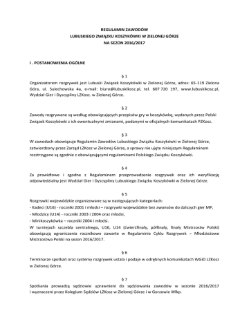 Regulamin rozgrywek LZKosz. sezon 2016/17