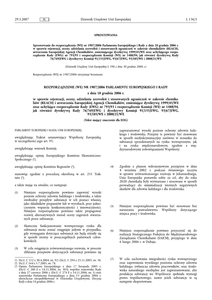 ROZPORZĄDZENIE (WE) NR 1907/2006 PARLAMENTU EUROPEJSKIEGO I RADY