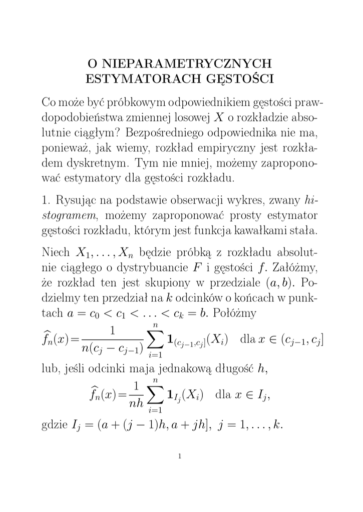 całkuje się do jedności (nazwijmy ją jądrem). Estymatorem jądrowym gęstości f nazywamy funkcję postaci