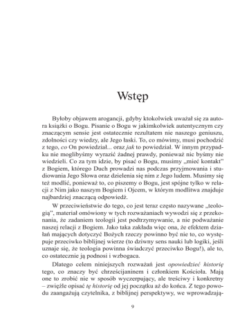 Wstęp Byłoby objawem arogancji, gdyby ktokolwiek uważał się za autora książki o Bogu. Pisanie o Bogu w jakimkolwiek autentycznym czy znaczącym sensie jest ostatecznie rezultatem nie naszego geniuszu, zdolności czy wiedzy, ale Jego łaski. To, co mówimy, musi pochodzić z tego, co On powiedział... oraz jak to powiedział. W innym przypadku nie moglibyśmy wyrazić żadnej prawdy, ponieważ nic byśmy nie wiedzieli. Co za tym idzie, by pisać o Bogu, musimy „mieć kontakt” z Bogiem, którego Duch prowadzi nas podczas przyjmowania i studiowania Jego Słowa oraz dzielenia się nim z Jego ludem. Musimy się też modlić, ponieważ to, co piszemy o Bogu, jest spójne tylko w relacji z Nim jako naszym Bogiem i Ojcem, w którym modlitwa znajduje najbardziej znaczącą odpowiedź. W przeciwieństwie do tego, co jest teraz często nazywane „teologią”, materiał omówiony w tych rozważaniach wywodzi się z przekonania, że zadaniem teologii jest podtrzymywanie, a nie podważanie naszej relacji z Bogiem. Jako taka zakłada więc ona, że efektem działań mających dotyczyć Bożych rzeczy powinno być nie to, co występuje przeciwko biblijnej wierze (to dziwny sens nauki lub logiki, jeśli uznaje się, że teologia powinna świadczyć przeciwko Bogu!), ale to, co ostatecznie ją podnosi i wzbogaca. Dlatego celem niniejszych rozważań jest opowiedzieć historię tego, co znaczy być chrześcijaninem i członkiem Kościoła. Mają one to zrobić nie w sposób wyczerpujący, ale treściwy i konkretny – zwięźle opisać tę historię od jej początku aż do końca. Z tego powodu zaangażują czytelnika, z biblijnej perspektywy, we wprowadzają9 10 Bóg nasz Ojciec ce studium tych doktryn i tematów, które dotyczą wiecznego Bożego celu oraz ostatecznego znaczenia wiary chrześcijańskiej. Studium to w spójny sposób ukazuje, jak te doktryny i tematy wiążą się ze sobą, to jest w jaki sposób każdy z nich jest nieodłączną i kluczową częścią jednolitego systemu Bożego objawienia, które rozciąga się od 1 Księgi Mojżeszowej do Księgi Objawienia. Fakt, że te doktryny i tematy można zrozumieć i uczynić je znaczącymi, jest celem, któremu mają służyć... w nadziei, że będą budować i zachęcać tych, którzy chcą poważnie traktować Jezusa Chrystusa. To, że materiał w tej książce został określony jako „rozważania”, nie oznacza, że nie ma ona być czymś więcej niż tylko książką do rozważań. Sugeruje to raczej, że studium teologii ma nas zaangażować w uważną kontemplację. Dlatego – aby możliwe było rozwinięcie każdej związanej z tekstem myśli – czytelnik jest zachęcany, by przeanalizował podany fragment (fragmenty) Pisma dla każdego podrozdziału. Każdy podrozdział będzie z kolei służył jako podstawa do ciągłego i jednolitego studium biblijnego przesłania, angażując przez to czytelnika w uporządkowane i systematyczne podejście do biblijnej teologii. Chociaż teologia jest często odrzucana na rzecz podejścia uznawanego za bardziej „praktyczne” (to jest podejścia „jak to zrobić” w odniesieniu do chrześcijańskiego życia albo chrześcijańskiej pracy w Kościele), faktem jest, że „praktyczne” samo w sobie jest puste i martwe bez teologii, która porusza umysł, raduje serce i angażuje życie w nieustannie wzrastającą relację z Bogiem. To, że te rozważania wykorzystują w jakimś stopniu analogię w ramach „uprawiania teologii”, wynika z tego, że sam Bóg czasami „prawuje się” w ten sposób. Powiedział On: „Chodźcie więc, a będziemy się prawować – mówi Pan! Choć wasze grzechy będą czerwone jak szkarłat, jak śnieg zbieleją; choć będą czerwone jak purpura, staną się białe jak wełna” (Iz 1,18). Bóg mówi, że jedna rzecz może być „porównana” do czegoś innego. Przy pomocy podobieństwa albo analogii, Bóg daje zrozumienie i mądrość w odniesieniu do tego, co w inny sposób mogłoby być zbyt trudne do bezpośredniego przekazania. Na podobnej zasadzie analogie zostały zastosowane w niniejszych rozważaniach. Odnosząc się głównie do relacji w małżeństwie i rodzinie, mają swoje uzasadnienie w tym, że terminologia używana Wstęp 11 w kontekście tych relacji pojawia się także w Piśmie w opisie Bożego ludu. Kościół jest więc określony nie tylko jako „oblubienica Chrystusa” (2 Kor 11,2; por. Obj 19,7), ale też jako „domownicy Boga” (Ef 2,19; por. Gl 6,10), którzy mówią do Boga „Abba! Ojcze!” (Rz 8,14-15; Gl 4,6; por. Mt 6,9). Wynika z tego, że to, co prawdziwe w kwestii tych relacji, może być w analogiczny sposób użyte w opisie naszej relacji z Bogiem w Chrystusie. W związku z powstaniem tych rozważań, należy podziękować Bogu oraz braciom i siostrom w Chrystusie, z którymi miałem przywilej uczyć się o Jezusie. Pośród nich byli studenci z chrześcijańskiej kawiarni na uniwersytecie stanowym. Uważają oni, że znaczenie i istotność wiary chrześcijańskiej leżą w osobistej relacji z żyjącym Chrystusem. Dzięki spędzaniu z nimi czasu zostałem zachęcony i wzmocniony w Nim. Odtąd rozważania te były rozszerzane, gdy dzieliłem się nimi ze studentami przygotowującymi się do służby w swoim życiu oraz służby w Kościele. Tak samo nieocenione w pisaniu takiej książki są pomysły i sugestie ze strony innych – pomysły i sugestie, które – choć nie są nasze – stają się jednak naszymi poprzez zrozumienie i oddanie. To, że nie potrafię przypomnieć sobie wielu z tych źródeł, nie umniejsza mojej wdzięczności za każdego pisarza, nauczyciela i współlokatora, który przyczynił się do mojego wzrostu w Chrystusie. To, że nie mogę zidentyfikować już wielu z tych „glinianych naczyń”, w których ten Skarb został mi dany, jest w moim przekonaniu tym, czego chcieliby ci właśnie, którzy pracowali dla Bożej chwały. Jest to przede wszystkim tym, czego chcę d