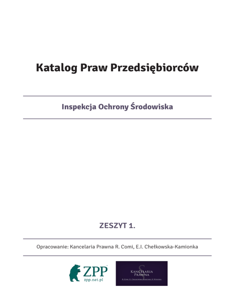 Katalog Praw Przedsiębiorców Inspekcja Ochrony Środowiska ZESZYT 1. Opracowanie: Kancelaria Prawna R. Comi, E.I. Chełkowska-Kamionka O KANCELARII Kancelaria R. Comi, E. I. Chełkowska-Kamionka Sp. J. jest prężnie rozwijającą się spółką prawniczą. Nasi wspólnicy mogą poszczycić się wieloletnim doświadczeniem zawodowym, każdy jest specjalistą w swojej dziedzinie. Wspierani przez zespół młodych prawników i aplikantów radcowskich łączą tradycję z innowacyjnością tak, aby sprostać wyzwaniom stawianym przez nowoczesny rynek usług prawniczych oraz zmieniające się potrzeby Klientów. SPECJALIZACJA I. Prawo ochrony środowiska Oferta adresowana do przedsiębiorców i samorządów lokalnych korzystających ze środowiska poprzez: pobór wody, zrzut ścieków, składowanie odpadów, wydalanie gazów spalinowych z kominów wszelkich ciepłowni, inwestycje wymagające sporządzenia oceny oddziaływania na środowisko, ekspertyzy dotyczące zgodności projektu inwestycyjnego z Ramową Dyrektywą Wodną, optymalizację posiadanych zezwoleń na korzystanie ze środowiska. Każdy podmiot prawa korzystający ze środowiska w sposób wyżej wskazany powinien, zgodnie z obowiązującym prawem, posiadać uzyskane w drodze postępowania administracyjnego stosowne pozwolenia (decyzję administracyjną). Kancelaria może służyć pomocą na etapie budowy wniosku o wydanie właściwej decyzji administracyjnej oraz, w razie potrzeby, na etapie postępowania administracyjnego, włącznie z postępowaniem przed sądami administracyjnymi. Obsługa prawna przedsiębiorstw zajmujących się produkcją lub dystrybucją żywności, opiniowanie poprawności oznakowania produktów spożywczych (zgodnie z przepisami polskiego prawa oraz prawa Unii Europejskiej), prowadzenie spraw sądowych, sporządzanie odwołań od decyzji organów kontrolnych i skarg do Wojewódzkiego Sądu Administracyjnego oraz prowadzenie spraw przed Naczelnym Sądem Administracyjnym. [email protected] [email protected] IV. Prawo pracy V. Prawo administracyjne VI. Prawo autorskie VII. Gospodarka nieruchomościami II. Prawo żywnościowe Naszych klientów zapraszamy do biura znajdującego się przy: Al. Lotników 1 00-976 Warszawa III. Obsługa prawna przedsiębiorców VII. Prawo mieszkaniowe tel. 22 115 00 84 tel. 22 115 91 65 tel/fax. 828 18 32 2 Rozwój przemysłu i jego rosnący wpływ na środowisko naturalne powodują, że zarówno poszczególne państwa, jak i społeczność międzynarodowa coraz silniej kierują swą uwagę na kwestię ochrony środowiska. Z tego względu ustawodawstwa krajowe i międzynarodowe tworzą coraz bardziej rygorystyczne normy związane z korzystaniem ze środowiska. Nic więc dziwnego, że coraz powszechniejsze stają się różnego rodzaju kontrole, mające na celu egzekucję przestrzegania tych przepisów. KONTROLE PODMIOTÓW KORZYSTAJĄCYCH ZE ŚRODOWISKA Wszystkie przedsiębiorstwa produkcyjne korzystają ze środowiska i z tego względu mogą być kontrolowane przez Inspekcję Ochrony Środowiska. Może się zdarzyć, że kontrola będzie prowadzona wspólnie przez więcej niż jedną inspekcję, np. Inspekcję Ochrony Środowiska i Inspekcję Sanitarną. Takie działanie organów kontrolujących nie będzie stanowiło naruszenia prawa, mimo że ustawa o swobodzie działalności gospodarczej co do zasady zabrania prowadzenia równocześnie więcej niż jednej takiej kontroli. Oznacza to, że w niektórych sytuacjach przedsiębiorca nie może skutecznie oprotestować prowadzenia w jego przedsiębiorstwie kontroli przez więcej niż jedną Inspekcję. Natomiast w innych przypadkach oprotestowanie przeprowadzania w jednym czasie kilku kontroli jest prawem przedsiębiorcy, które Inspekcja zmuszona będzie respektować. ZAKRES KONTROLI Inspekcja Ochrony Środowiska może przeprowadzać kontrole m. in. w zakresie: — przestrzegania przepisów o ochronie środowiska, 3 — przestrzegania decyzji ustalających warunki korzystania ze środowiska oraz przestrzegania częstotliwości i sposobu prowadzenia pomiarów wielkości emisji i jej wpływu na stan środowiska (mowa o decyzjach dotyczących poboru wody, zrzutu ścieków, składowania odpadów, wydalania gazów spalinowych z kominów wszelkich ciepłowni), — przestrzegania przepisów dotyczących zawartości siarki w ciężkim oleju opałowym stosowanym w instalacjach energetycznego spalania paliw oraz w oleju do silników statków żeglugi śródlądowej, — eksploatacji instalacji i urządzeń chroniących środowisko przed zanieczyszczeniem, — przestrzegania przepisów o gospodarce opakowaniami oraz odpadami opakowaniowymi, — przestrzegania przepisów o obowiązkach przedsiębiorców w zakresie gospodarowania niektórymi odpadami oraz o opłacie produktowej, — postępowania z substancjami zubożającymi warstwę ozonową, o których mowa w ustawie z dnia 20 kwietnia 2004 r. o substancjach zubażających warstwę ozonową oraz z produktami, urządzeniami i instalacjami zawierającymi te substancje, — przestrzegania przepisów i uzyskanych na ich podstawie zezwoleń, z wyłączeniem kontroli laboratoryjnej, w zakresie postępowania z organizmami genetycznie modyfikowanymi. Należy zaznaczyć, że zakres kontroli dla każdego przypadku jest indywidualnie i szczegółowo określany w upoważnieniu inspektora do przeprowadzenia kontroli. 4 PROCEDURA KONTROLI Przedsiębiorca powinien zostać powiadomiony o planowanej kontroli. Kontrolę wszczyna się nie wcześniej niż po upływie 7 dni i nie później niż przed upływem 30 dni od dnia doręczenia zawiadomienia o zamiarze wszczęcia kontroli. Zanim inspektor przystąpi do kontroli, przedsiębiorca ma prawo żądać od niego okazania legitymacji służbowej oraz upoważnienia do przeprowadzenia kontroli. Warto wiedzieć, że inspektor powinien oprócz legitymacji służbowej posiadać następujące dokumenty (w zależności od podmiotu kontrolowanego oraz od czynności k