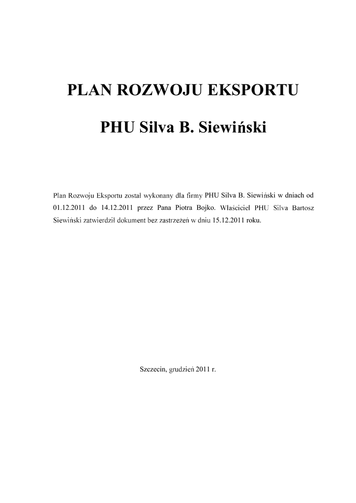 PLAN ROZWOJU EKSPORTU PHU Silva B