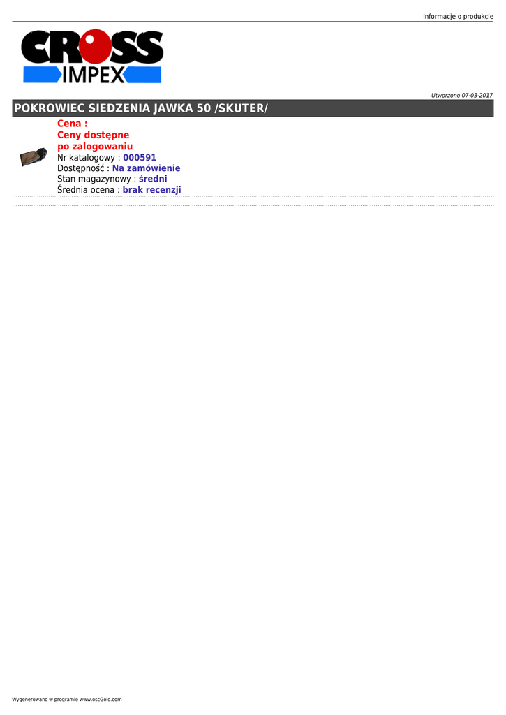 Informacje o produkcie Utworzono 07-03-2017 POKROWIEC SIEDZENIA JAWKA 50 /SKUTER/ Cena : Ceny dostępne po zalogowaniu Nr katalogowy : 000591 Dostępność : Na zamówienie Stan magazynowy : średni Średnia ocena : brak recenzji Wygenerowano w programie www.oscGold.com