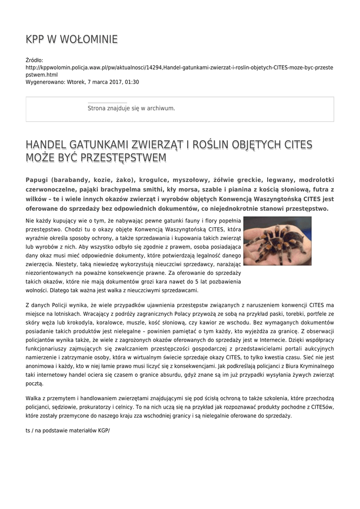 KPP W WOŁOMINIE HANDEL GATUNKAMI ZWIERZĄT I ROŚLIN
