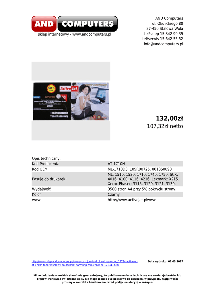 AND Computers -ActiveJet AT-1710N toner laserowy do drukarki