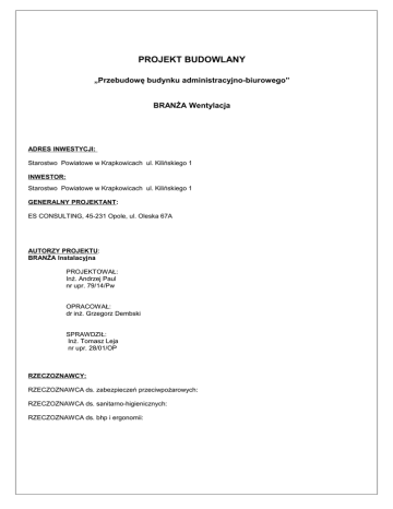 projekt budowlany - Starostwo Powiatowe w Krapkowicach