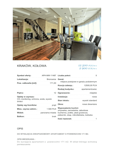 KRAKÓW, KOŁOWA 12 500 PLN/mc