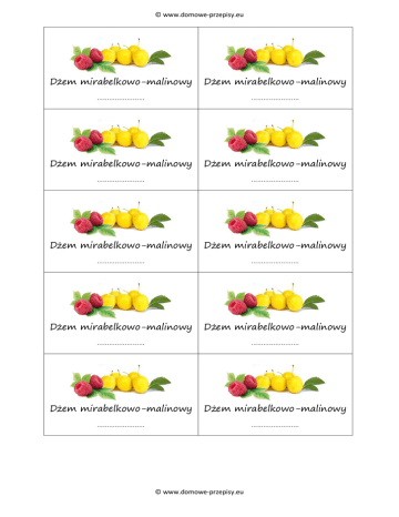 © www.domowe-przepisy.eu Dżem mirabelkowo-malinowy Dżem mirabelkowo-malinowy …………………… …………………… Dżem mirabelkowo-malinowy Dżem mirabelkowo-malinowy …………………… …………………… Dżem mirabelkowo-malinowy Dżem mirabelkowo-malinowy …………………… …………………… Dżem mirabelkowo-malinowy Dżem mirabelkowo-malinowy …………………… …………………… Dżem mirabelkowo-malinowy Dżem mirabelkowo-malinowy …………………… …………………… © www.domowe-przepisy.eu