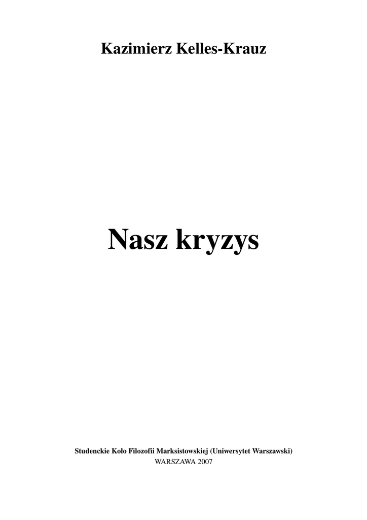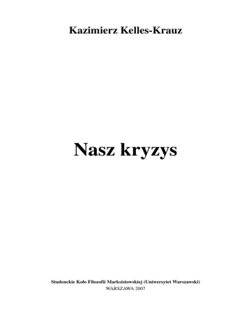 Kazimierz KellesKrauz Nasz kryzys Studenckie Koło Filozofii Marksistowskiej (Uniwersytet Warszawski) WARSZAWA 2007 Kazimierz KellesKrauz – Nasz kryzys (1902 rok) Artykuł Kazimierza KellesKrauza „Nasz kryzys”, napisany pod pseudonimem M. Luśnia, został opublikowany w czasopiśmie „Przedświt” 1902, nr 2, ss. 4356 i nr 3, ss. 8494 i stanowi polemikę z koncepcjami Mazura (St. Grabskiego), A. Wrońskiego (W. Jodki), Piotrowskiego (W. Wójtowicza) i innych. Podstawa niniejszego wydania: Kazimierz Kelles Krauz, „Pisma wybrane”, tom 2, wyd. Książka i Wiedza, Warszawa 1962. – 2 – © Studenckie Koło Filozofii Marksistowskiej (UW) www.skfmuw.w.pl Kazimierz KellesKrauz – Nasz kryzys (1902 rok) 1. Uwagi ogólne i teoretyczne „Przedświt” stał się organem dyskusyjnym: naturalne potrzeby życia partyjnego prące w tym kierunku przemogły różne, często naciągane argumenty, jakie wytaczano przeciwko takiej przemianie. Kiedy ruch nasz, stając się stopniowo masowym, wyszedł z okresu czystej propagandy zasad i stanął oko w oko z konkretnymi zagadnieniami, które za pomocą apriorycznego schematu rozstrzygnąć się nie dadzą, dyskusja u nas okazała się wprost niezbędna. Konkretnym takim nad wszystkimi innymi górującym zagadnieniem jest dla nas – kwestia wyzwolenia się z jarzma carskiego; toteż nad nią toczy się od dwóch lat nieustanna dyskusja w artykułach tow. A. Wr.1, Piotrowskiego2, Mazura3, Zgorzkniałego4 i wielu innych, a obejmuje ona też – jako strony tego głównego zagadnienia – kwestie: chłopską, terroru, konstytucji rosyjskiej, stosunku do patriotów polskich i do innych narodowości, wreszcie kwestię solidarności międzynarodowej. Przejściu partii od propagandy abstrakcyjnych zasad do polityki konkretnej towarzyszy jednak zwykle jedno mniej pocieszające zjawisko, którego i myśmy uniknąć nie zdołali. Między zasadami socjalizmu a „życiem”, czyli, mówiąc ściśle, takim zachowywaniem się partii względem różnych zagadnień przez życie nasuwanych, aby z niego w każdym wypadku wypływał największy pożytek dla ludu, przez partię reprezentowanego, w gruncie rzeczy sprzeczności żadnej nie ma. Czymże bowiem są same te zasady? W socjalizmie naukowym przynajmniej – a o tym tylko dziś może być mowa – niczym innym jak ogólnymi wnioskami z trafnie zaobserwowanych tendencji samego rozwoju teraźniejszego społeczeństwa. Ponieważ same te zasady nie są gabinetowymi konceptami, lecz kwintesencją konkretnych badań nad prawami rządzącymi społeczeństwem kapitalistycznym, ponieważ przy tym zawarty w nich nieunikniony subiektywizm nie jest subiektywizmem osobistym, lecz tylko odbiciem sposobu odczuwania i pojmowania właściwego klasie robotniczej – więc rzeczą naturalną jest, że te zasady zawierają w sobie rozwiązanie konkretnych zagadnień w sposób zgodny z interesem klasy pracującej. Wiele z tych zagadnień istniało już w czasie, kiedy tworzyły się zasady socjalizmu naukowego5, i weszło w skład indukcji, z której one wypłynęły. Inne istniały wówczas tylko w zarodkach, dziś – przybrały formę wyraźną i znaczne rozmiary, ale i te zarodki przeważnie bystre oko twórców naukowego socjalizmu dostrzegło. W każdym jednak razie zasady socjalizmu zawierają tylko wskazówki dla rozwiązywania konkretnych zagadnień danego czasu i kraju, ogólny jego kierunek – a nie gotowe raz na zawsze formuły. Trzeba umieć te zasady do danych kwestii stosować, albo też, jeżeli nastręcza się coś rzeczywiście nowego, w życiu społecznym nieprzewidzianego – rozszerzać i uzupełniać, kierując się zawsze ich głęboko rewolucyjnym duchem. Otóż kiedy partia zaczyna spełniać tę niezbędną czynność, z jednej strony znajdują się wtedy ludzie o ciasnych głowach, chociaż często ognistych temperamentach, którzy albo nie rozumieją jeszcze potrzeby wyjścia z okresu propagandy zasad, albo nie są zdolni i nie czują się Aleksander Wroński, pseud. Witolda JodkiNarkiewicza. – Red. Pseud. Władysława Wójtowicza. – Red. 3 Pseud. Stanisława Grabskiego. – Red. 4 Pseud. Leona Wasilewskiego. – Red. 5 Czas ten ciągnie się od Manifestu komunistycznego do Programu Erfurckiego mniej więcej. 1 2 – 3 – © Studenckie Koło Filozofii Marksistowskiej (UW) www.skfmuw.w.pl Kazimierz KellesKrauz – Nasz kryzys (1902 rok) na siłach do ujęcia zagadnień konkretnej rzeczywistości w duchu rewolucyjnym i dlatego boją się tej konkretności, boją się interpretacji zasad zastosowanej do rzeczywistych potrzeb danego kraju i czasu, obstają przy abstrakcyjnych, niezmiennych formułach i przeważnie cofają się w ten sposób nieświadomie ku anarchizmowi, odrzucając w swym „radykalizmie” w końcu nawet te praktyczne zastosowania zasad, które zawierają się już w pierwszych sformułowaniach naukowego socjalizmu, jak na przykład współdziałanie w pewnych wypadkach z postępowymi partiami mieszczańskimi lub odbudowanie Polski. U nas tę rolę donkiszotów „czystości sztandaru” brali na siebie Soc. Demokraci Królestwa Polskiego. Z drugiej znów strony jednakowoż wytwarza się zbrojna prawica partii. Ci ludzie są bardzo pozytywni, liczą się z rzeczywistością i możliwością, nie grzeszą schematyzmem i prostacką frazeologią rozcinania węzłów gordyjskich; ale znowu, przez reakcję przeciwko tamtym, uważają, a przynajmniej uważać są skłonni w ogóle zasady socjalizmu naukowego za przestarzałe dogmaty, przeszkadzające konkretnej, realnej polityce. Powiedziałem: przez reakcję przeciwko tamtym; ale to tylko podrzędniejszy czynnik, przyczyna zaś leży głębiej, w tym mianowicie, że w chwili przechodzenia od abstrakcyjnej propagandy zasad do konkretnej polityki w oczach niektórych socjalistów, zarówno jak niektórych społecznych reformatorów ze skrajnej lewicy mieszczańskiej, zaciera się nieco granica między dążeniami i interesami proleta